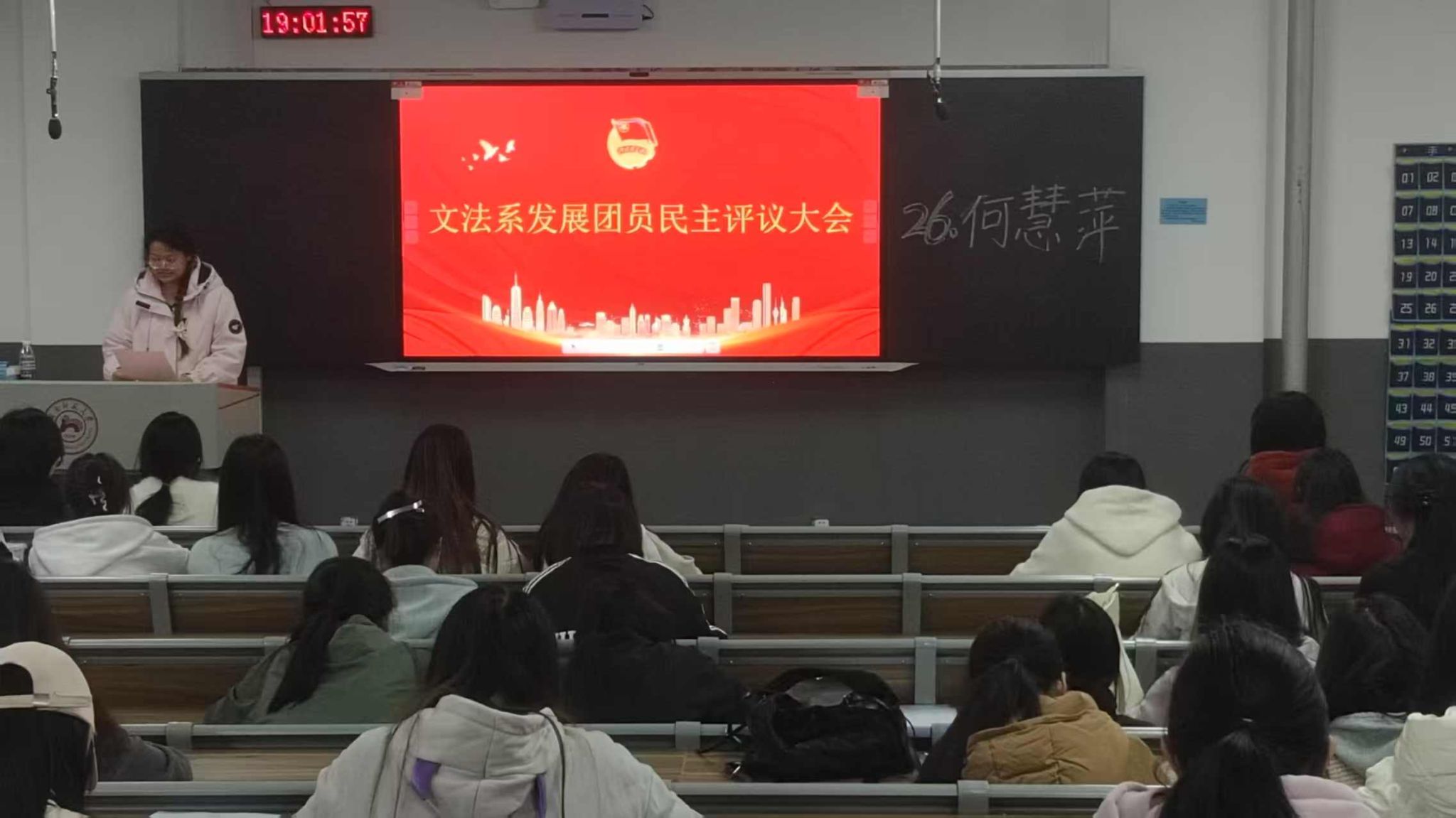 王俊楠宣读新发展团员民主评议会竞选和投票规则。