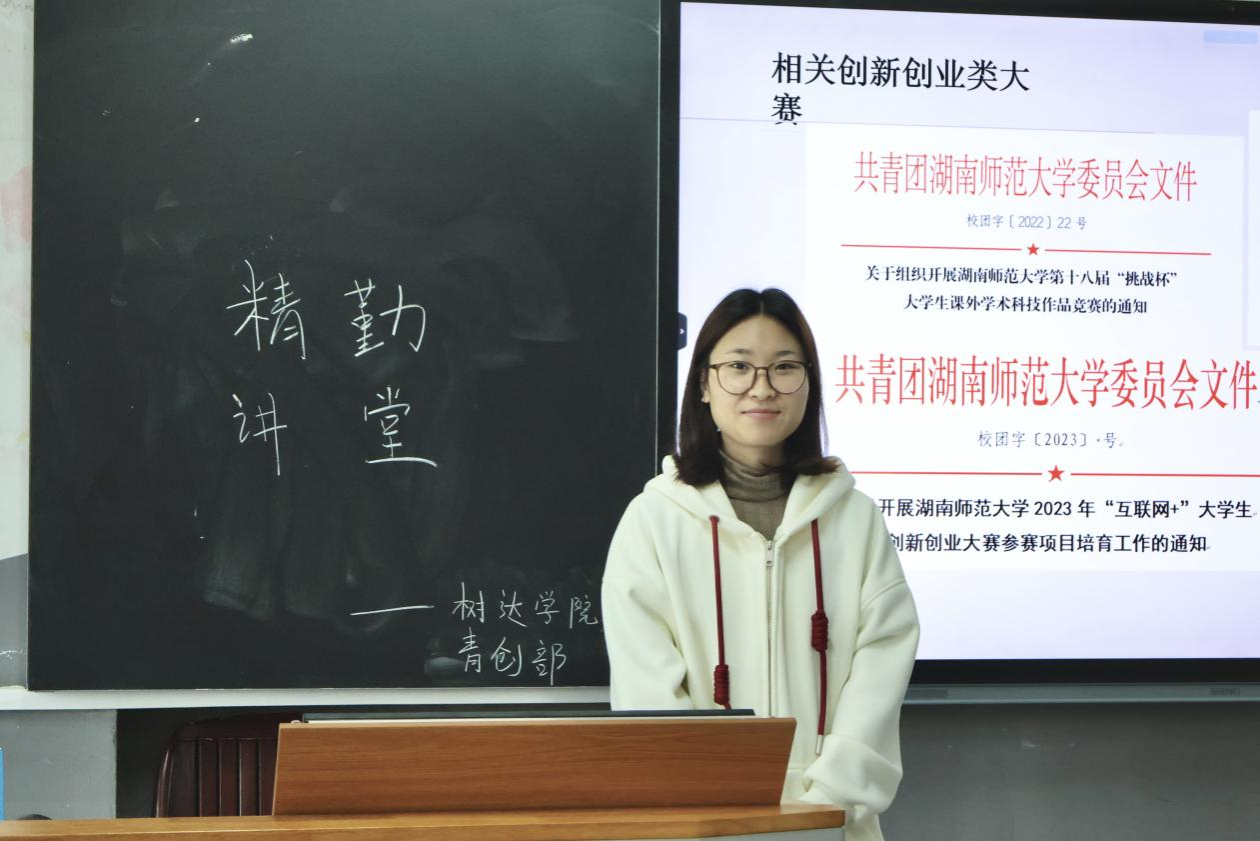 (记者 刘紫琼 陈锦红 周劲翔)2月27日中午,公司团委青年创新创业指导部在树达楼115教室开展以“创无限可能,践社会担当梦”为主题的精勤讲堂活动。2021级电子信息科学与技术专业易雨担任主讲人。