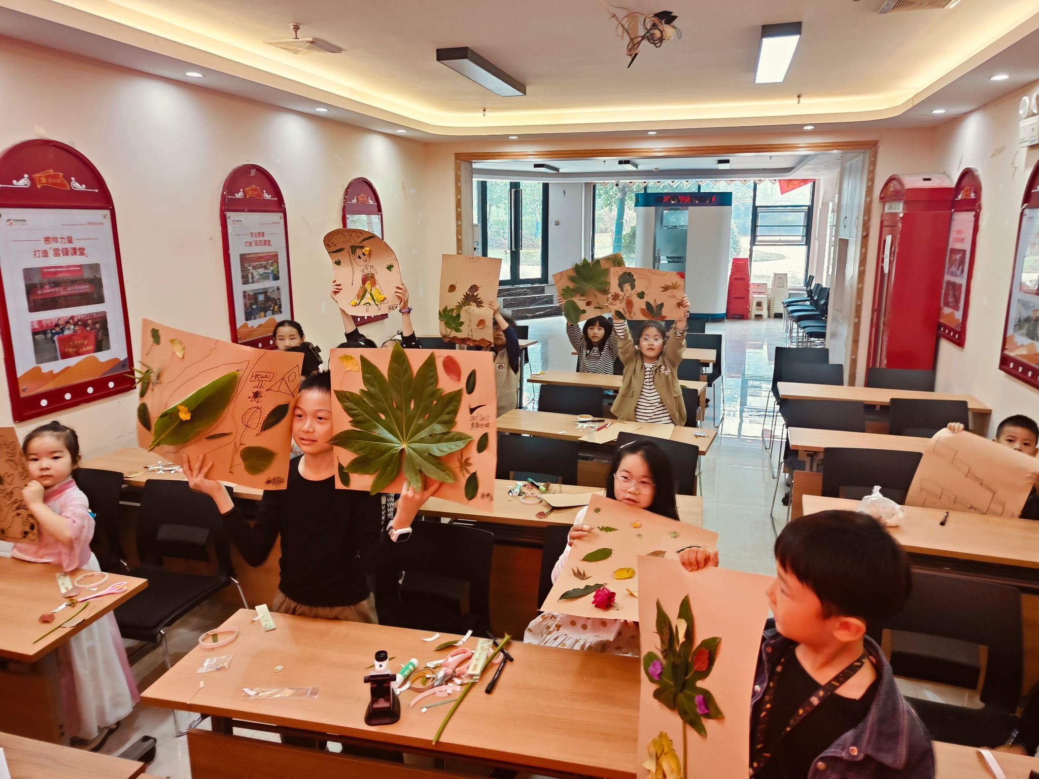 小朋友们在志愿者们的带领下,于周边的花园和绿地收集各种各样的植物素材;回到室内,在志愿者们耐心的指导下,整理植物素材并制作成书,不仅锻炼小朋友的观察力、动手能力,更激发了小朋友对大自然的热爱之情,增强保护自然的意识。