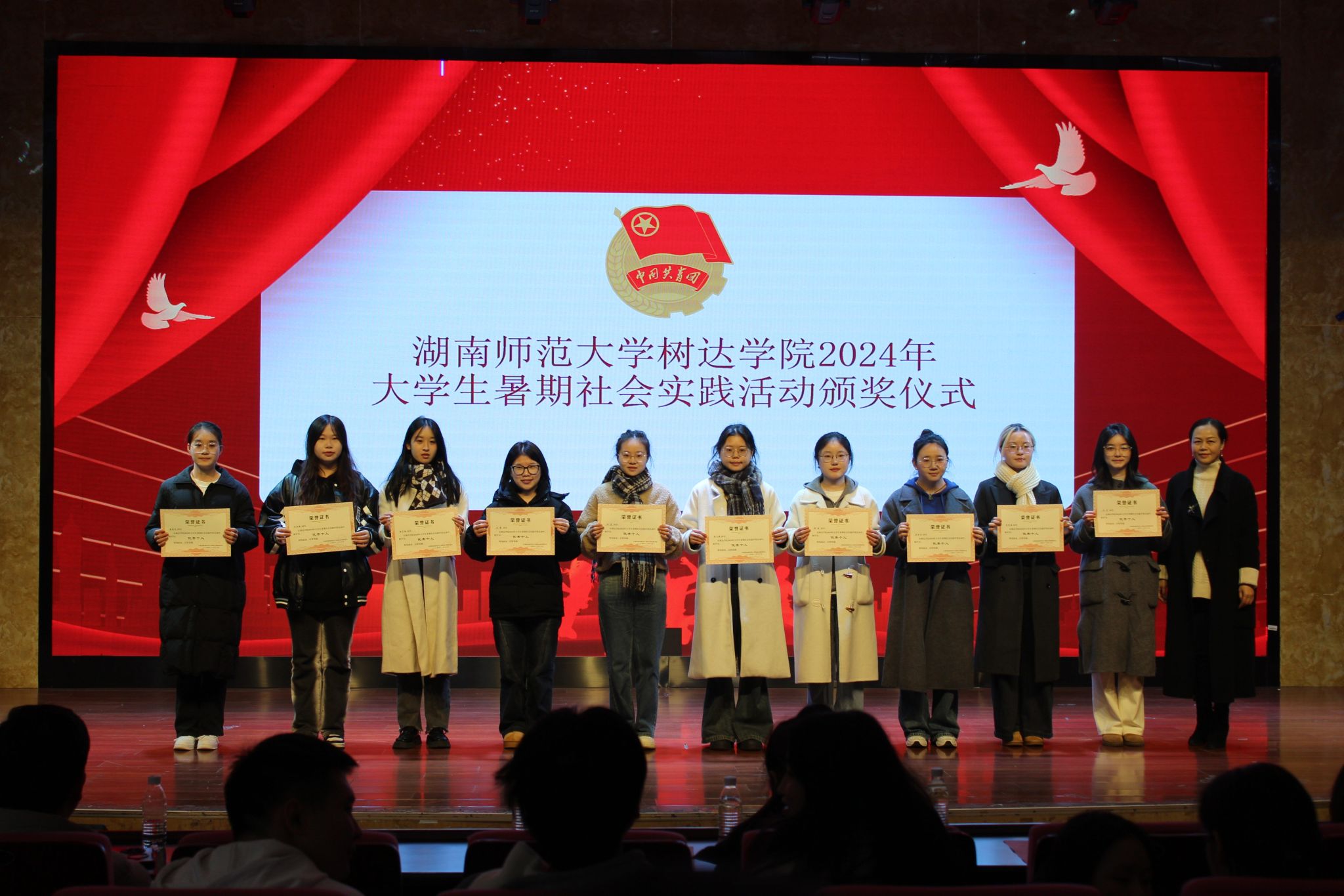 胡蓉对获奖团队和个人表示热烈祝贺,对暑期参与社会实践的师生致以诚挚的感谢。她指出,树达学子在本年度暑期社会实践中以满腔的热情致力于乡村振兴发展积累了宝贵实践经验。她对学子们后续乡村实践提出三点要求,一是要秉持热忱,积极响应习近平总书记对青年在乡村振兴的角色寄予的厚望,深入基层,掌握乡村一线真实资料;二是要以村民的精神面貌、对国家政策的认知度、邻里关系为切入点,聚焦研究集体经济可持续发展方面问题;三是要高度重视人身安全,努力成为一个有情怀、懂感恩的新时代青年。