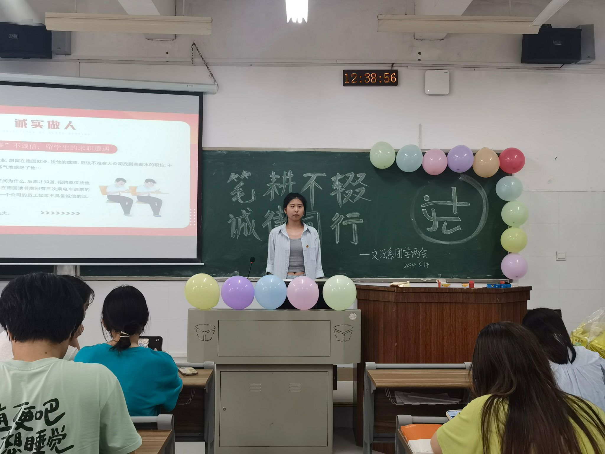 (记者 刘婉婷 尹诗茵 辜慧敏)6月14日中午,公司文法系团学两会开展以“笔耕不辍,诚律同行”为主题的团日活动。活动由文法系团总支组织部副部长李璐璐主持。