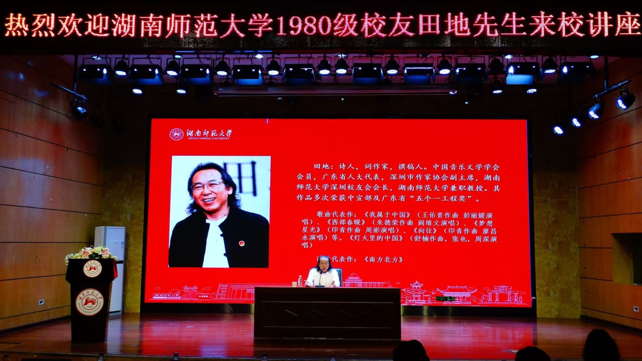 (记者 舒欢 边静玢)10月24日下午,公司1980级员工、著名诗人、词作家田地在树达楼113报告厅作了主题为“艺术颠覆人生”的讲座。2002级员工屈洋、公司党委副书记赵鑫海出席讲座。