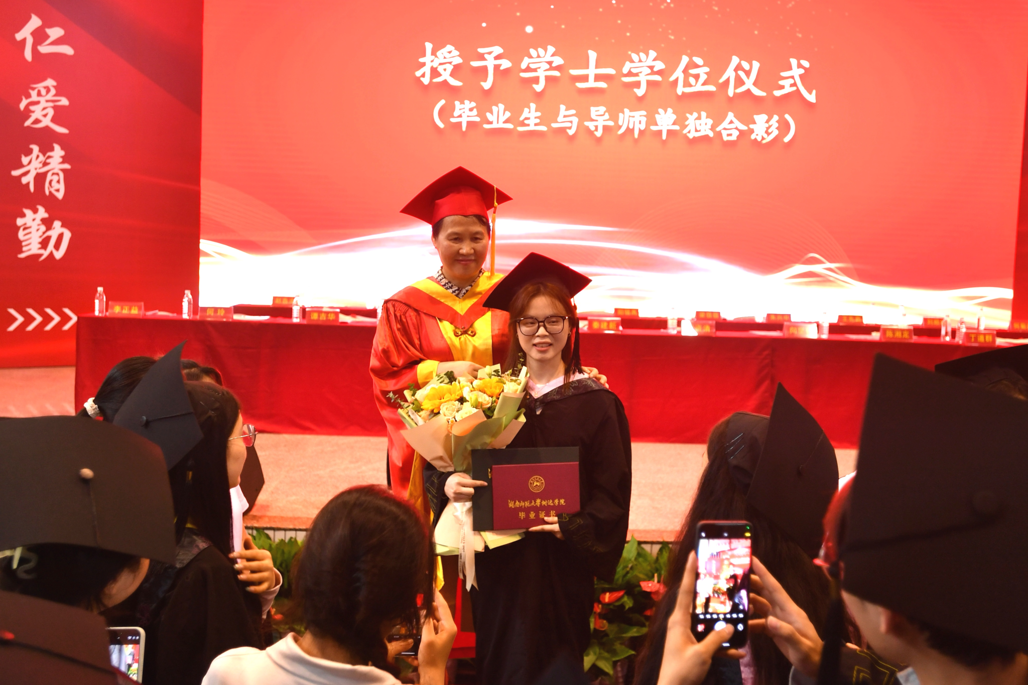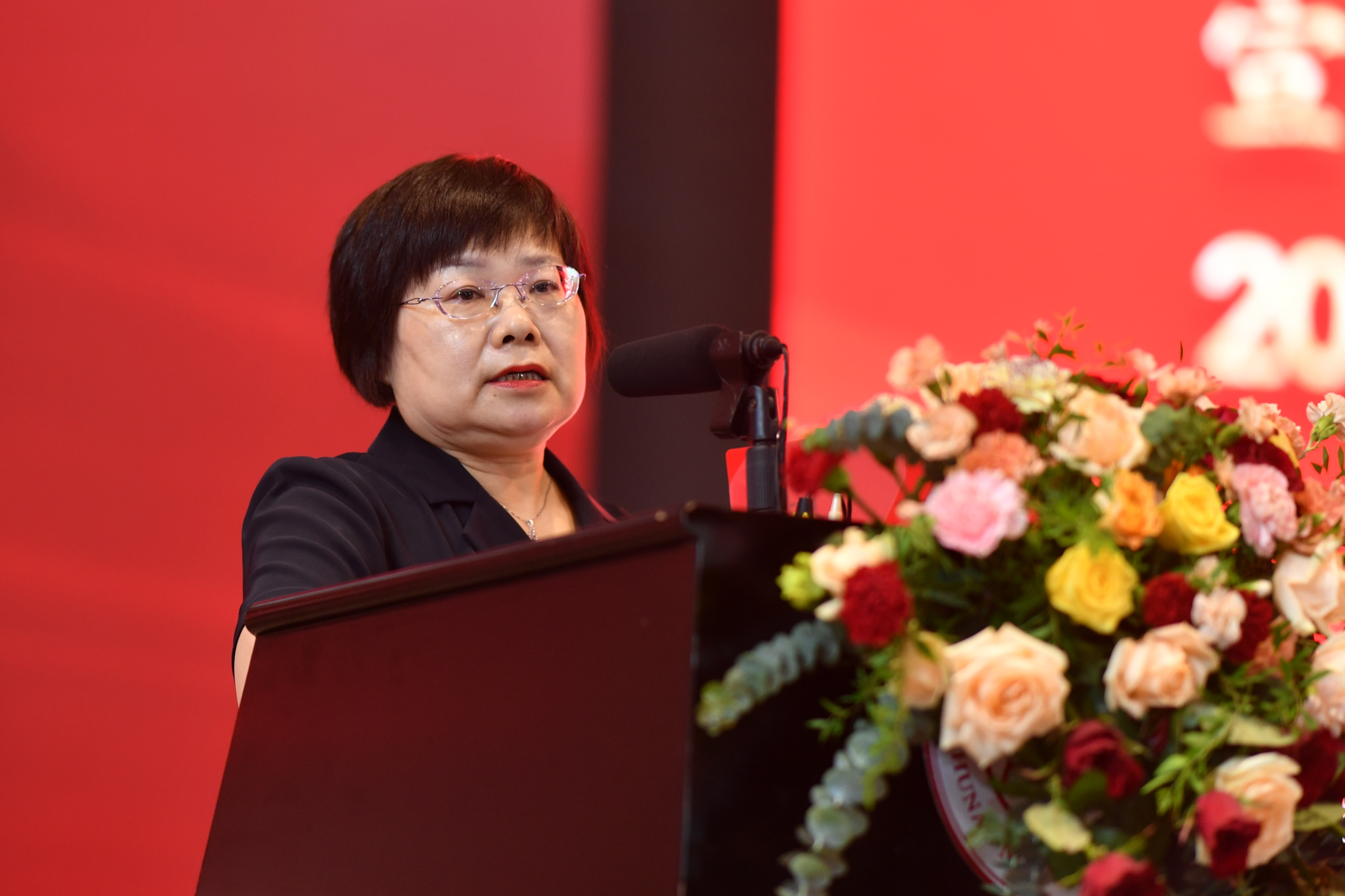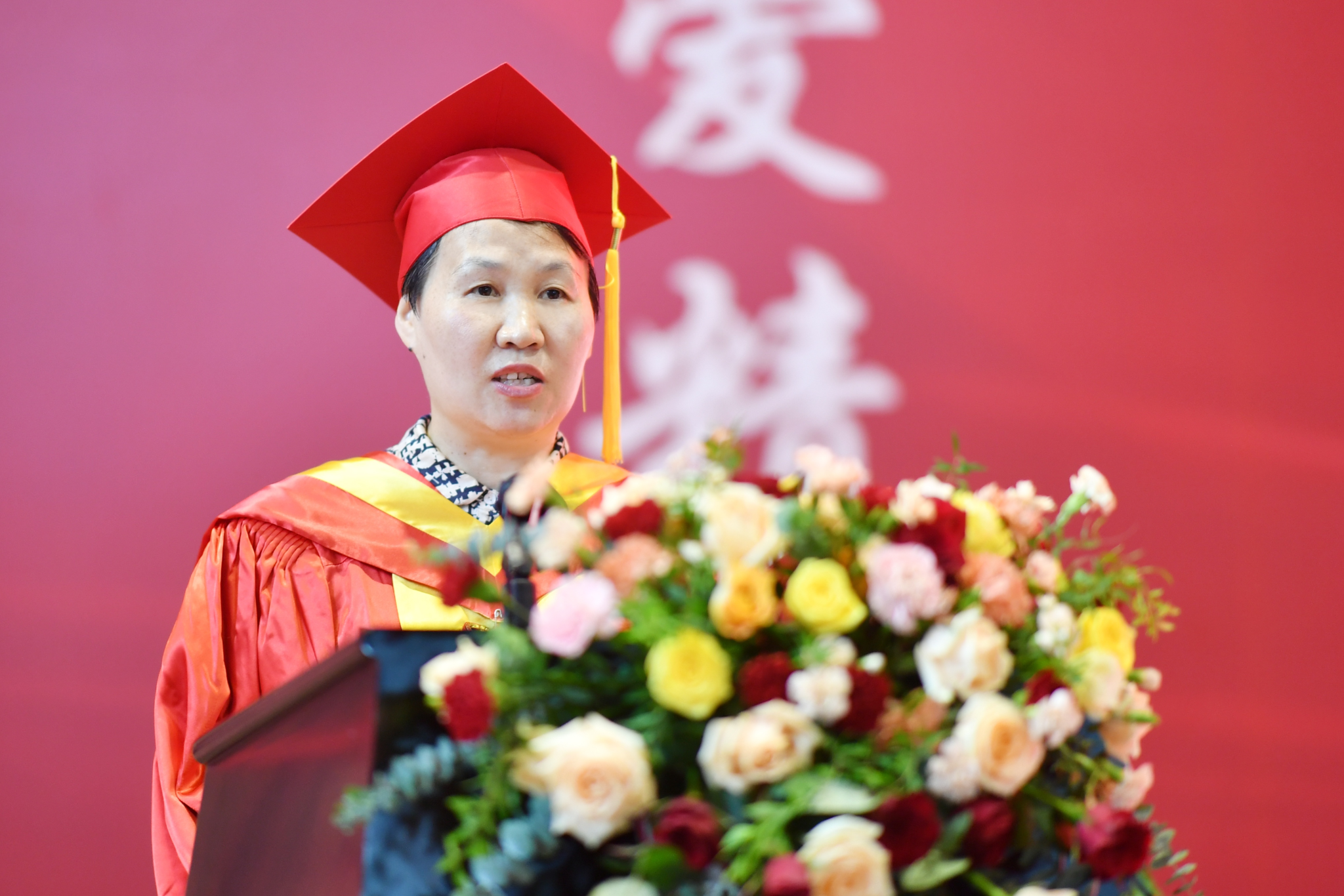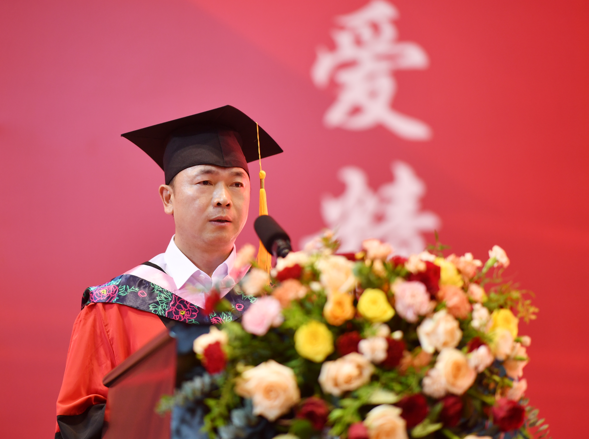 员工代表何玲回顾了自己创业的心路历程、分享了工作成就,并希望毕业生们不忘以“仁爱精勤”的校训要求自己,以实际行动回报母校的培育之恩。