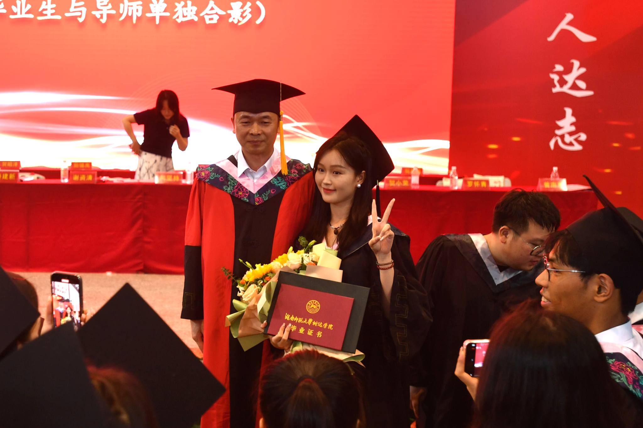 各导师为毕业生正冠拨穗,并颁发毕业证书、学位证书。