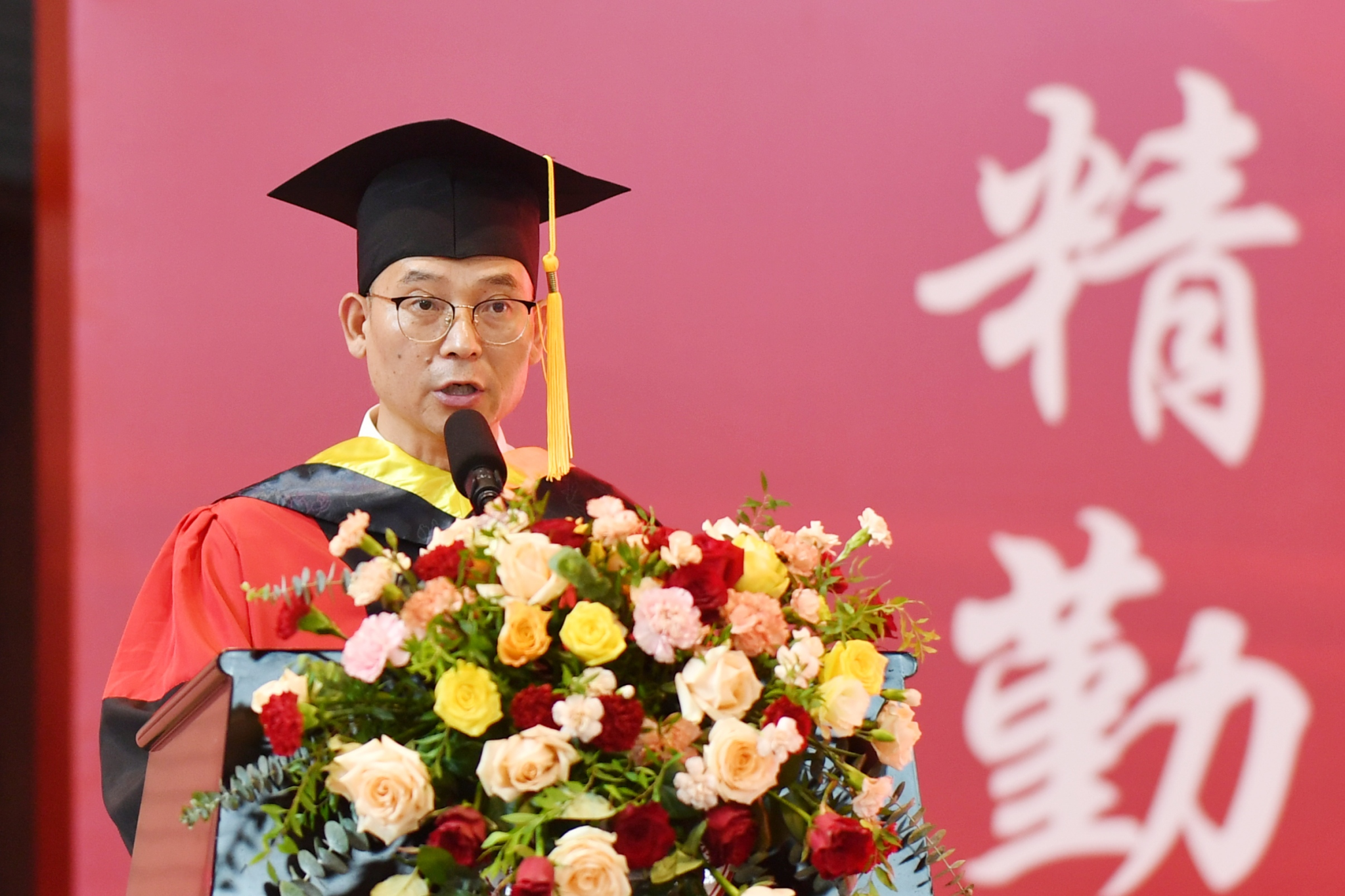向坚持代表公司向圆满完成学业的毕业生们致以热烈的祝贺,向辛勤培育大家的亲人和悉心教导同学们的师长致以最崇高的敬意。他说,无数个酣畅学习的白天,无数个默默耕耘的夜晚,大家在太阳成集团tyc33455cc不仅收获了“仁爱精勤”“树人达志”的精神气质,更积蓄了面对未来的勇气和力量。他就如何在风云变幻的时代大潮中担当起时代赋予的历史使命,提出三点与同学们共勉:一要乘风万里,心怀青云志。同学们要树立远大的目标,脚踏实地,要有为自己美好生活奋斗的能力,要有为国家、民族复兴贡献力量的本领;二是要保持热爱,不惧风浪急。大家无论身处何方,从事何种职业,都要保持热爱、满怀期待,拥有从头再来的勇气和从容,在自己所热爱的世界闪闪发光;三是要厚植底气,激扬青春梦。要不断超越自我,以更加丰富人生的内涵,更加开阔的眼光,更加开拓的精神,把激昂的青春梦融入伟大的中国梦。他指出,同学们要做“有理想”的人、做“敢担当”的人、做“能吃苦”的人、做“肯奋斗”的人,以实干书写人生,用奋斗镌刻荣光。