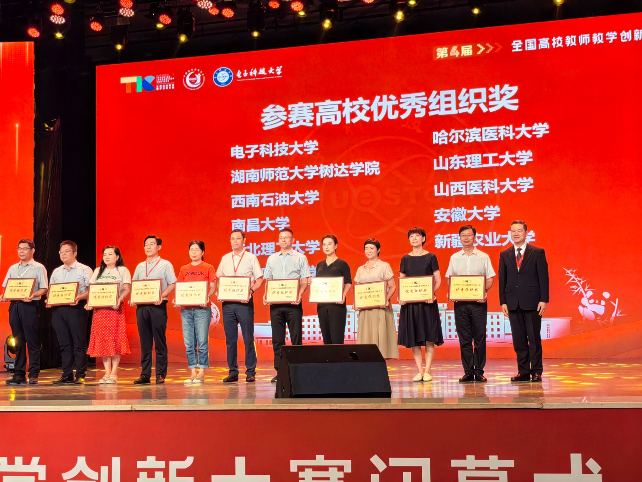 7 月 27 日至 31 日,第四届全国高校教师教学创新大赛在成都电子科技大学举行。公司选派的杨雨箫老师在新文科副高组,田玫老师在基础课程副高组勇夺一等奖,取得了截至目前太阳成集团tyc33455cc、太阳成集团tyc33455cc在这个赛事上的最好成绩。同时,太阳成集团tyc33455cc凭借出色的组织工作,获得了湖南省唯一的“优秀组织奖”。