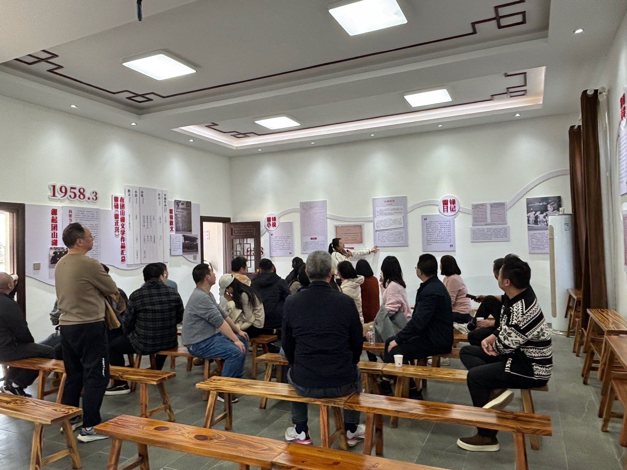 全体党员观看了影片《志愿军 存亡之战》,并参观了团山湖雷锋精神教育实践基地,学习了雷锋同志在团山湖村参与治理沩水、骑马送信、打硪车水、防洪抢险、拌禾插田的故事。在团山湖村的燕来新风馆内,团山湖村党总支书记、村委会主任程府迎为大家介绍了团山湖村以传承“雷锋精神”为核心的研学教育、智慧生态农业、文旅康养三大产业。