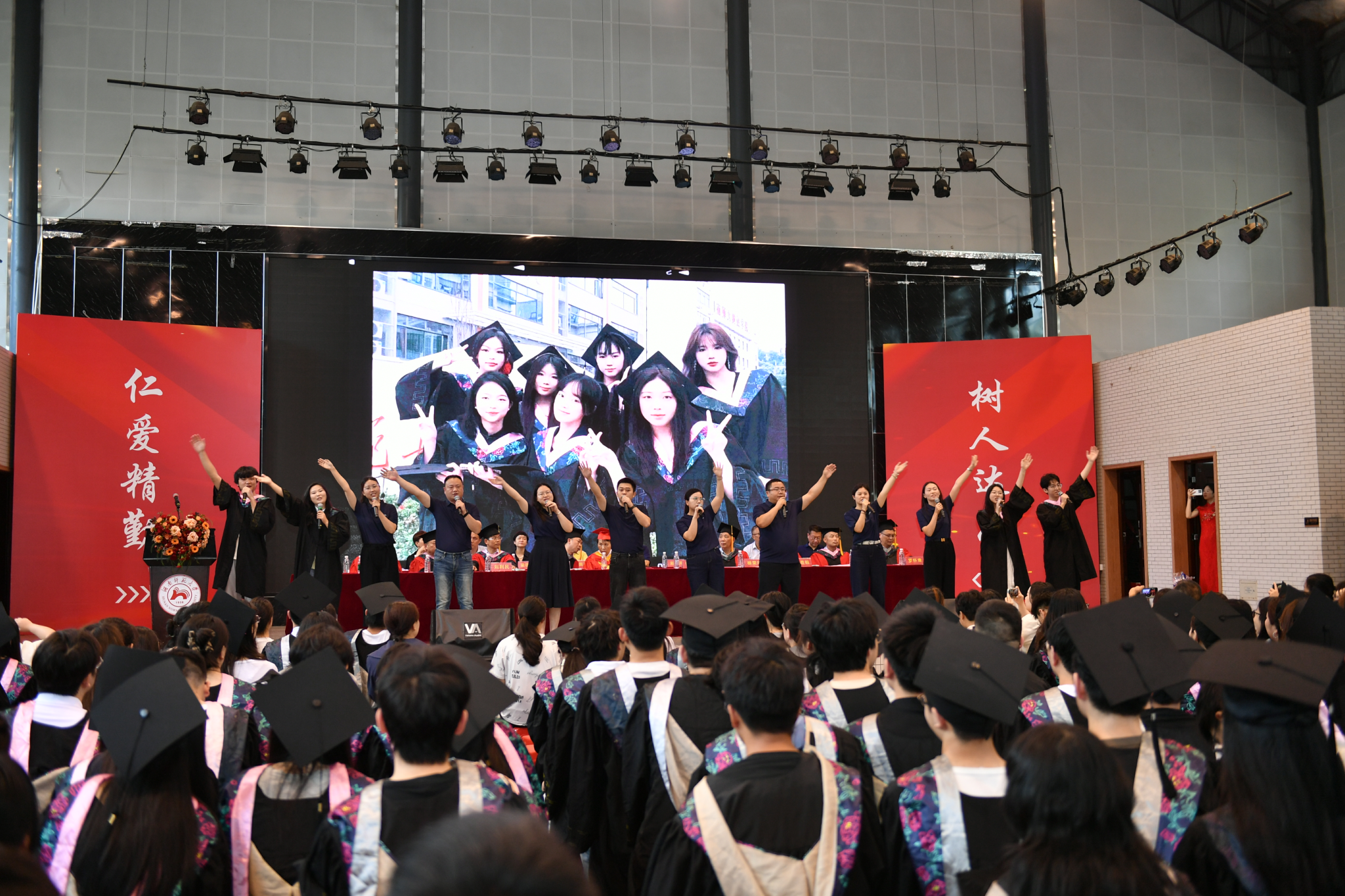 毕业班辅导员及员工代表演唱了《祝你一路顺风》,为2025届毕业生送上祝福。