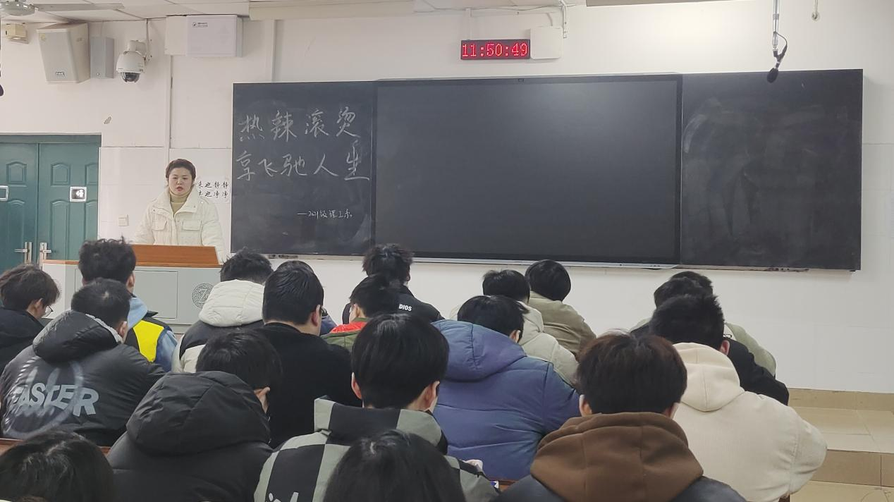 (记者 杨峥 刘艺杰)2月29日中午,公司理工系2021级电子信息科学与技术专业在树达楼107教室开展以“热辣滚烫,享飞驰人生”为主题的新学期班会。会议由理工系辅导员陈蓉主持。