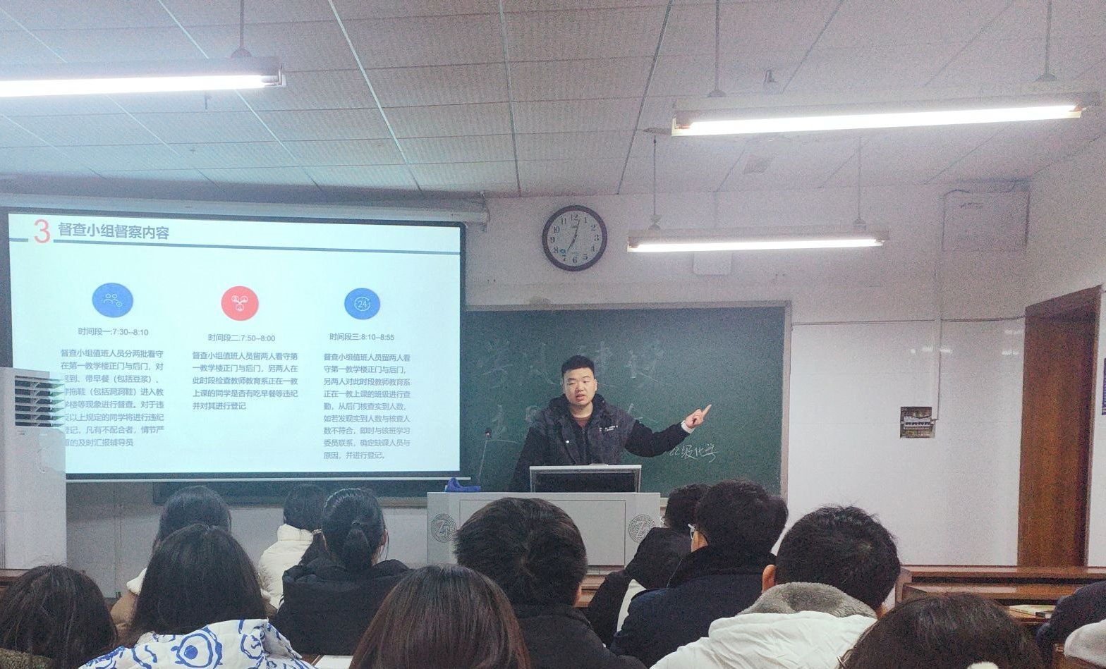 邓裕堃就班级上学期学风建设情况进行总结,并阐述了督察小组的工作内容及相关奖惩制度。他表示,学风建设是高等教育的重要组成部分,对于提高员工综合素质有着深远意义。他强调,作为班集体的一员,大家要努力营造严谨务实的学习氛围,为增强班级荣誉感贡献一份力量。