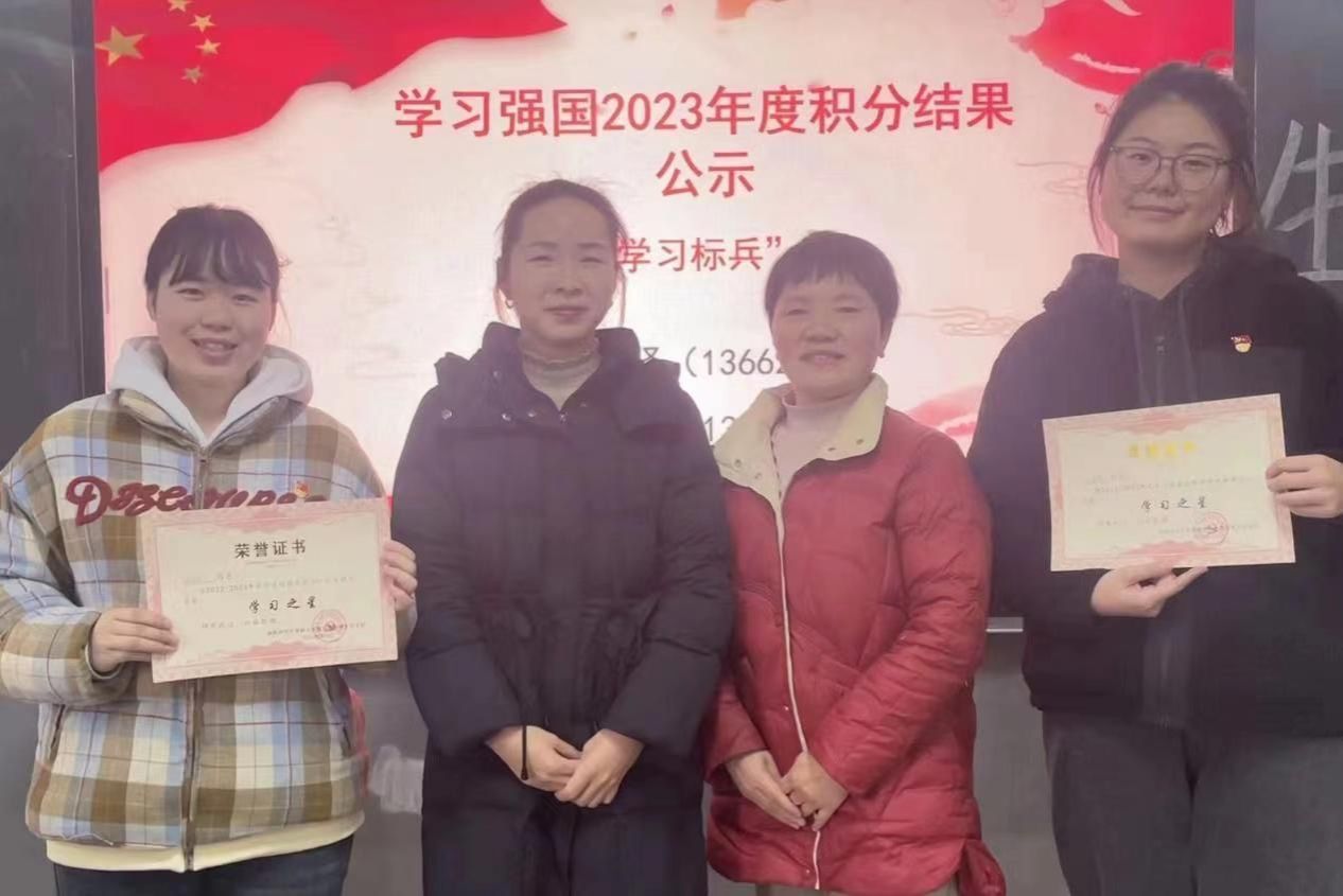 李仕荣公布了支部党员在学习强国平台中2023年度积分排名,宣布刘雨佳、王思贤两名党员同志荣获“学习之星”称号。