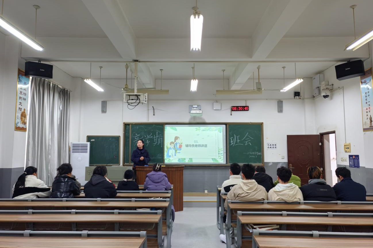 (记者 王洁 陈杰 粟思瑾)3月7日上午,公司经管系2022级酒店管理专业在树达楼405教室开展新学期主题班会。经管系辅导员王贞出席会议。会议由班长陈杰主持。