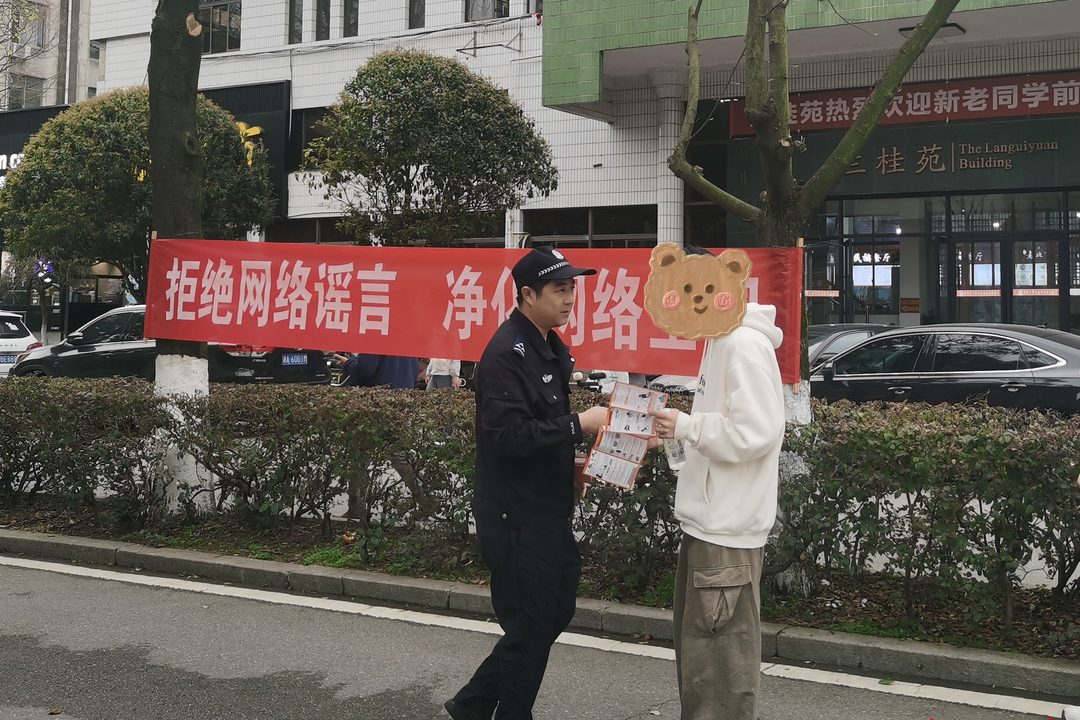 3月22日,桔子洲派出所民、辅警来到太阳成集团tyc33455cc开展“拒绝网络谣言 净化网络空间”宣传活动。