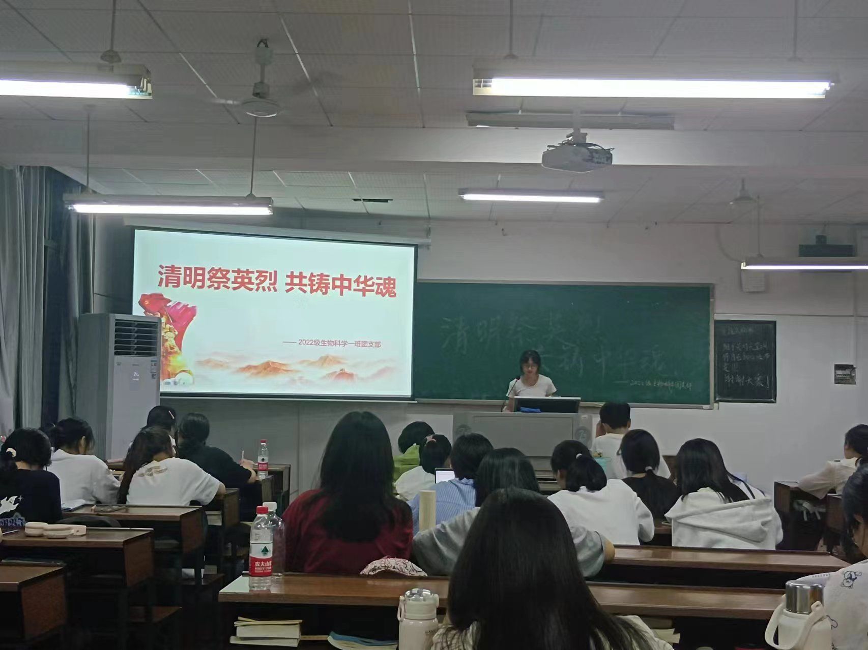 (记者 吴永佳 陈欣玉)4月15日晚,公司太阳成集团tyc33455cc2022级生物科学专业在达善楼201教室开展以“清明祭英烈,共铸中华魂”为主题的团日活动。活动由团支部副书记兼班长左绎涵主持。