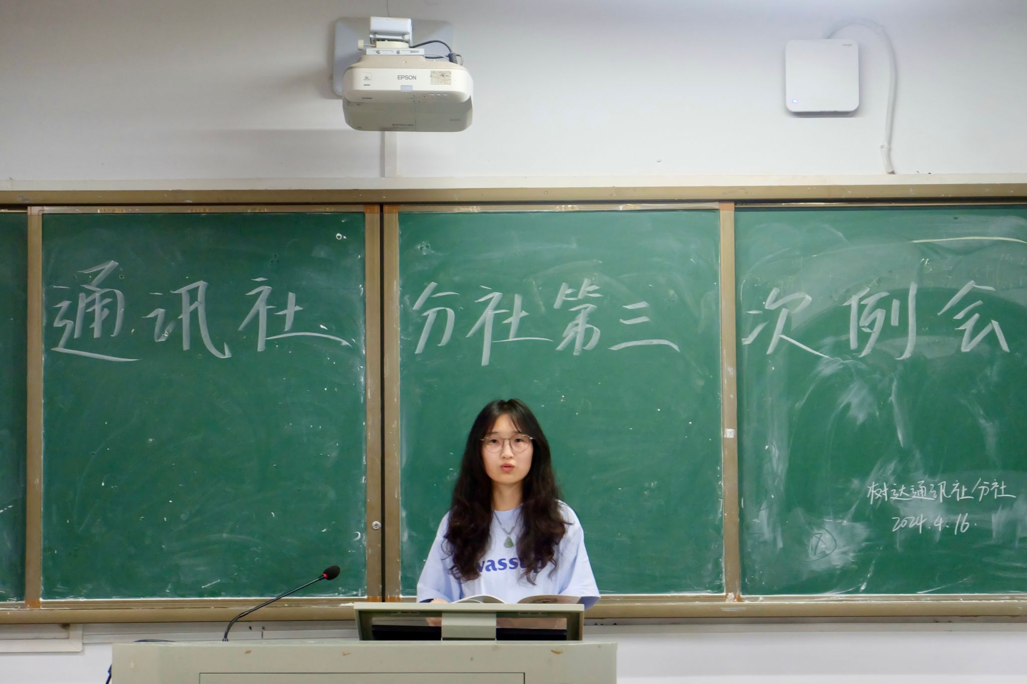 社长缪雨作会议总结。她对即将开展的读书会活动作了安排,并对积极参与社内活动的成员表示充分肯定。她提出两点要求,一是要各部门成员要提高参与活动的积极性,不断提升自我;二是要加强各部门之间的联系与沟通,增强凝聚力。她希望,在大家的共同努力下,树达通讯社能够不断朝着更好的方向发展。