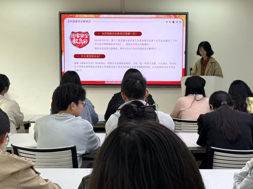 (记者 周慧 熊贝贝 李佳怡)4月19日中午,公司文法系员工第二党支部在党员之家开展以“宣传国家安全教育日”为主题的微党课。文法系员工第二党支部第一书记彭娇出席微党课。会议由文法系员工第二党支部组织委员陈盼担任微党课的主讲人。
