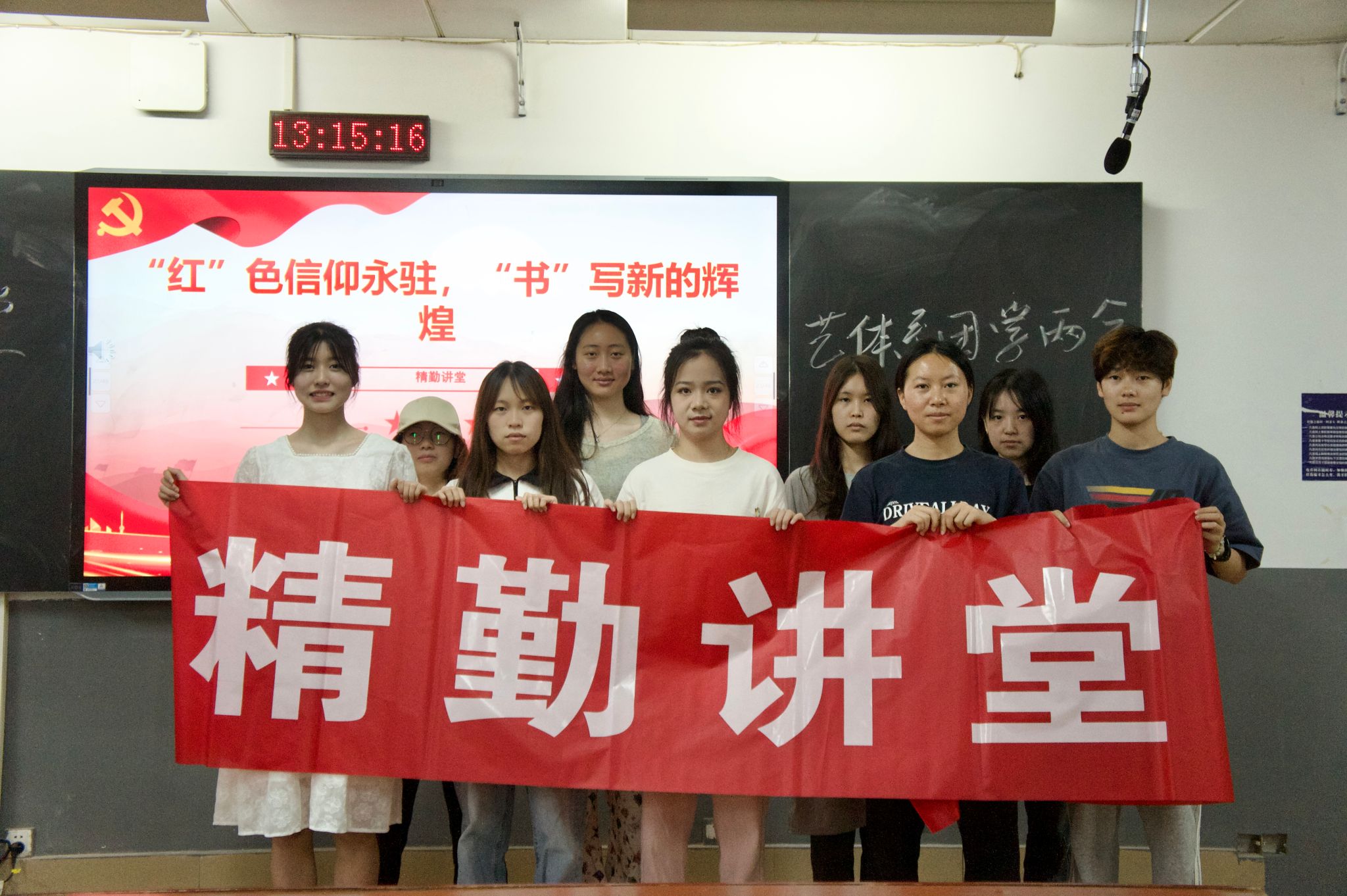 (记者 聂瑶 文思宇 龚宣)4月25日中午,公司艺体系在树达楼206教室开展以“‘红’色信仰永驻,‘书’写新的辉煌”为主题的精勤讲堂活动。2020级广播电视编导专业肖敬怡和2021级视觉传达设计专业刘琳担任主讲人。活动由社会实践部副部长丁优华主持。