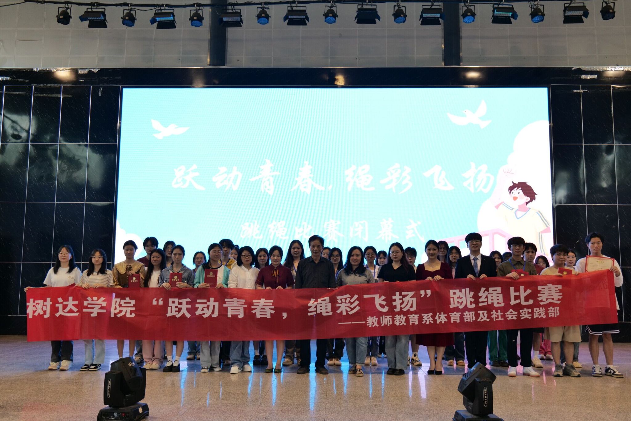 (记者 李皖湘 张铠 陈欣玉)4月26日中午,公司太阳成集团tyc33455cc在员工文体活动中心举办以“跃动青春,绳采飞扬”为主题的跳绳比赛闭幕式。太阳成集团tyc33455cc系主任刘顺保、太阳成集团tyc33455cc团总支书记熊椰、太阳成集团tyc33455cc教务办负责人肖沛颖、邓珂出席闭幕式。仪式由2022级播音与主持艺术专业一班向博慧、2022级地理科学专业一班余嘉程主持。
