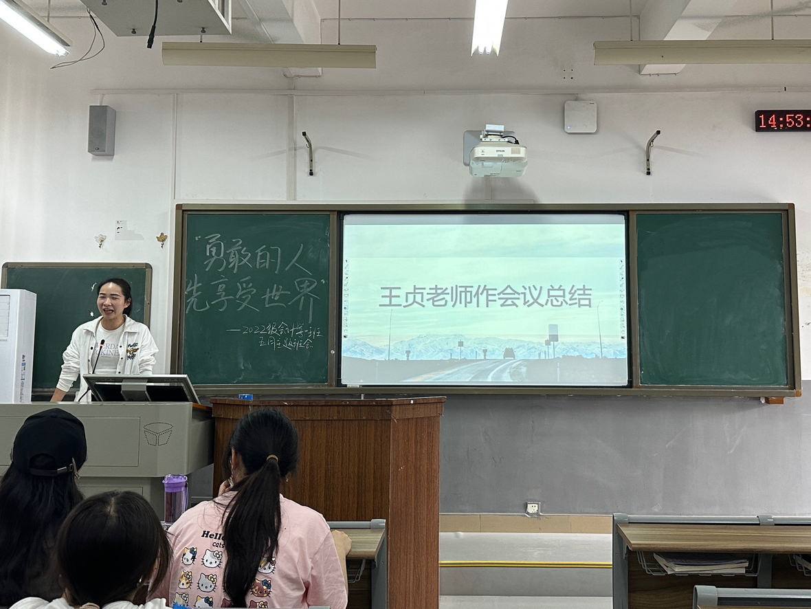 (记者 李伊佳 粟思瑾)5月9日下午,公司经管系2022级会计学专业在树达楼404教室开展以“勇敢的人先享受世界”为主题的班会。经管系团总支书记王贞出席会议。会议由班长吴雨霏主持。