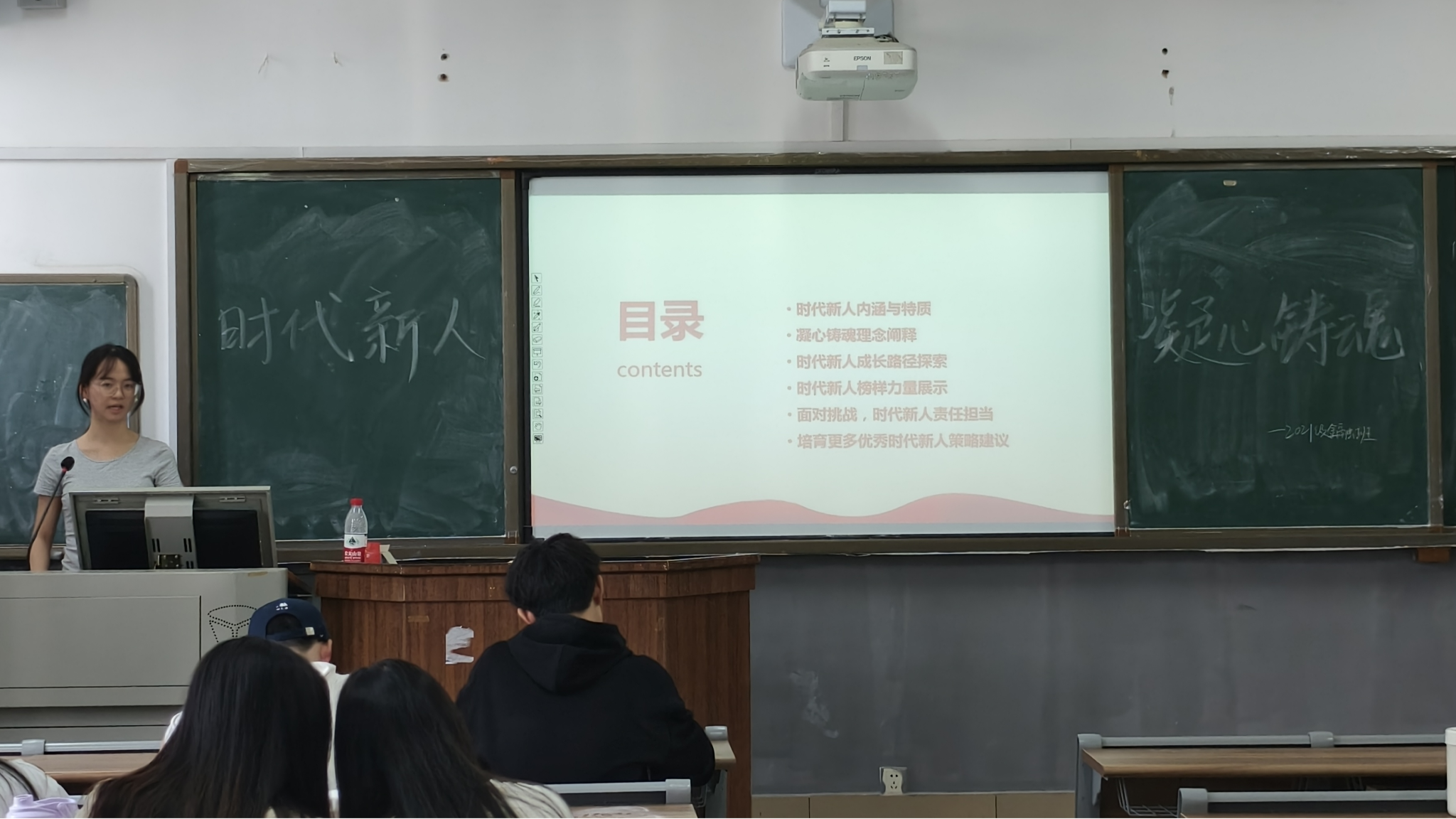 覃余乐从时代新人内涵与特质、凝心铸魂理念阐释、时代新人成长路径探索等六个方面进行讲解。她表示,营造良好的文化氛围、加强校园环境建设、拓展社会实践平台是培养优秀时代新人的条件。她希望,同学们能够树立远大的理想,践行社会主义核心价值观,继承和发扬中华优秀传统文化,为成长为一名有作为,敢担当的时代青年不懈奋斗。