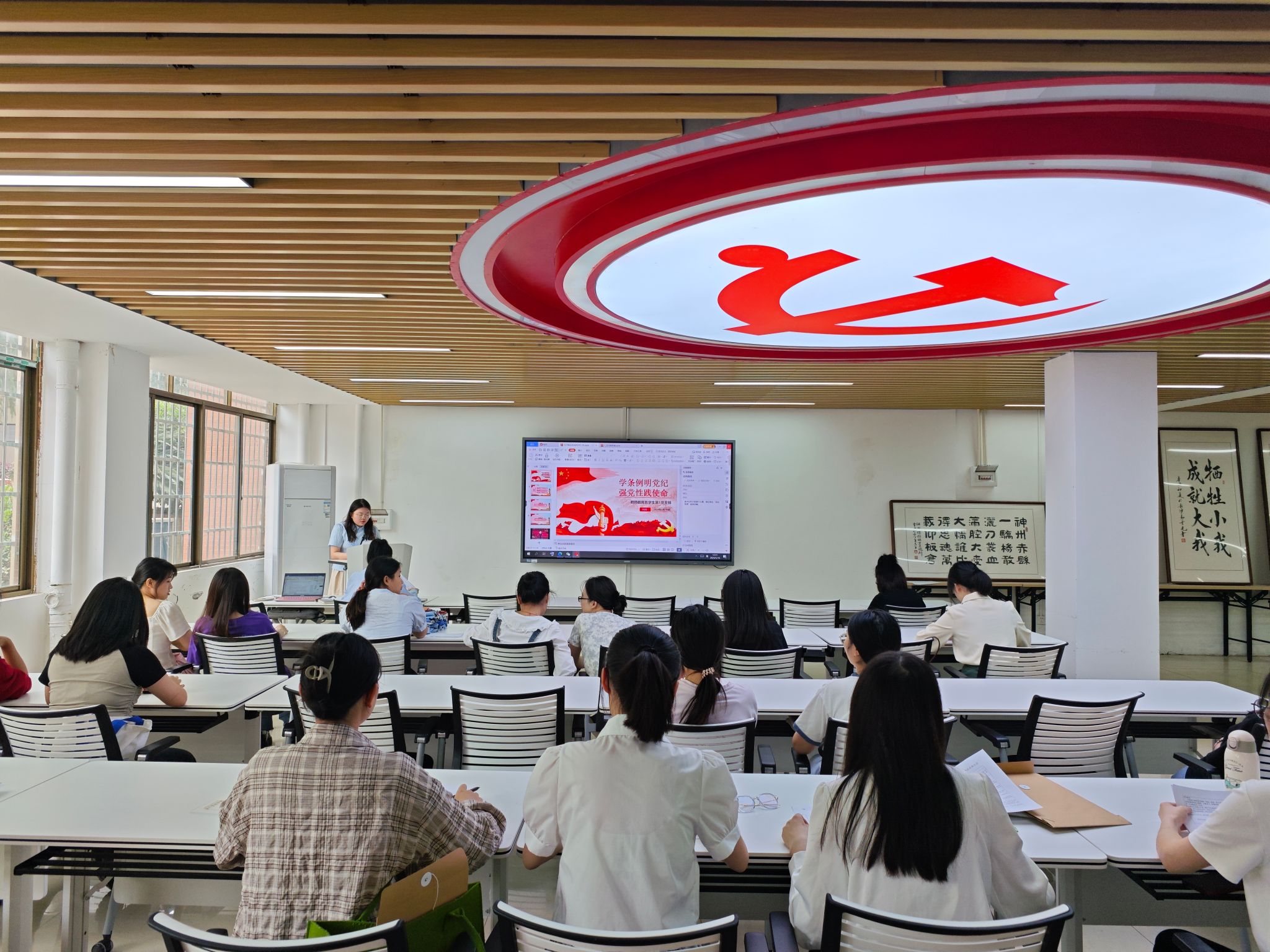 胡可曼汇报党员到场情况,并介绍会议流程。
