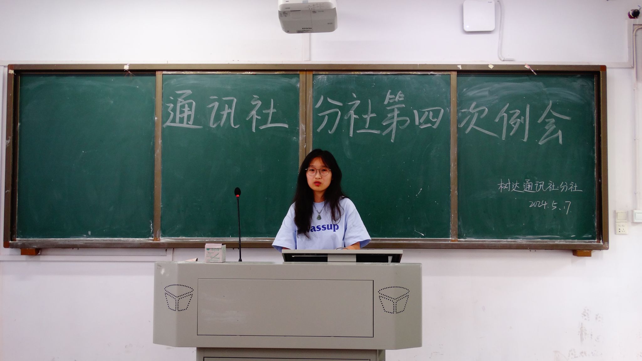 (记者 舒欢 边静玢)5月17日中午,公司树达通讯社张公岭分社在教学楼102教室召开本学期第四次例会。会议由分社办公室干事黄丽主持。