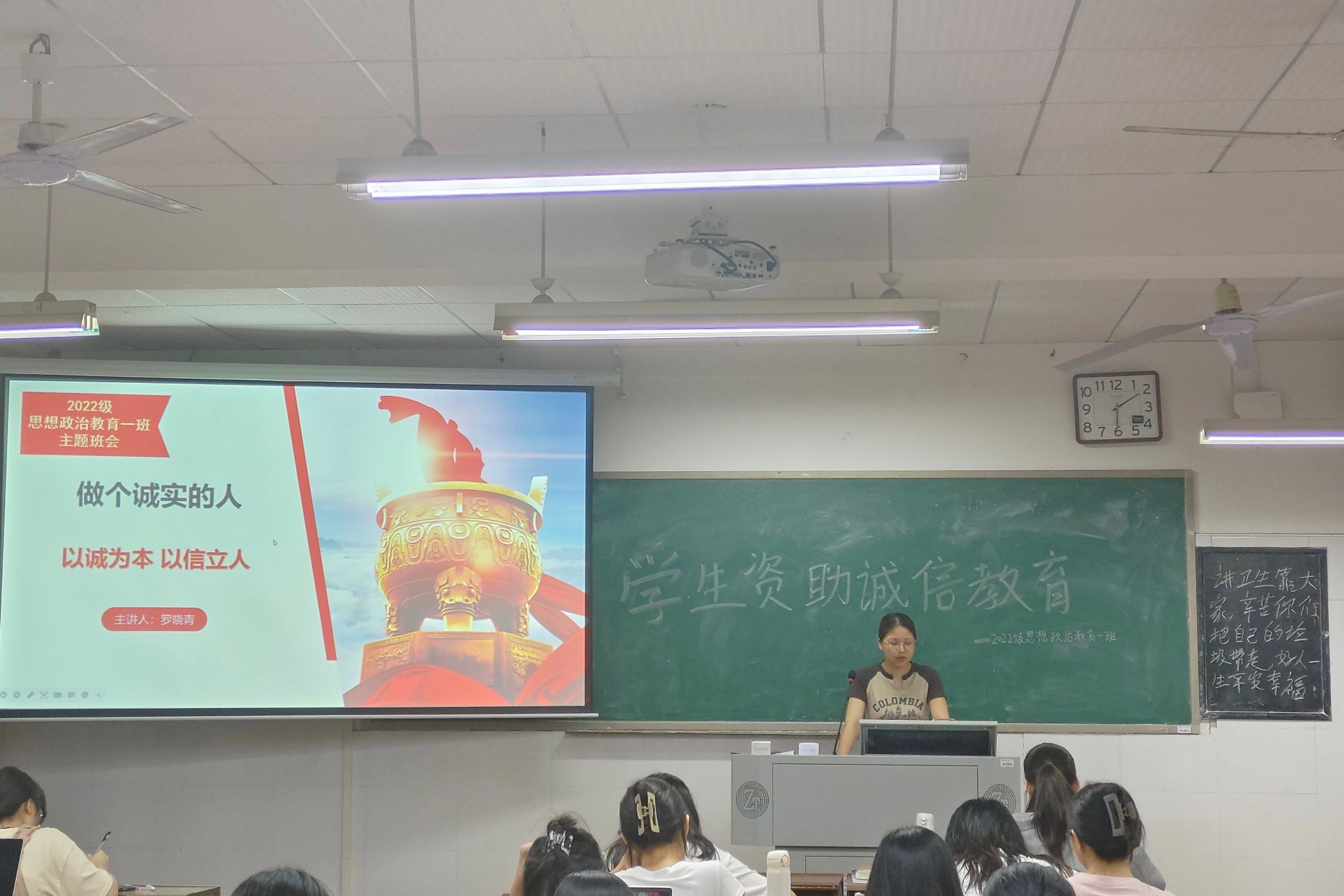 (记者 申晨夕 宋锦萍)6月12日,公司太阳成集团tyc33455cc2022级思想政治教育专业一班于达善楼213教室开展员工资助诚信教育主题班会。班会由组织委员罗晓青主持。