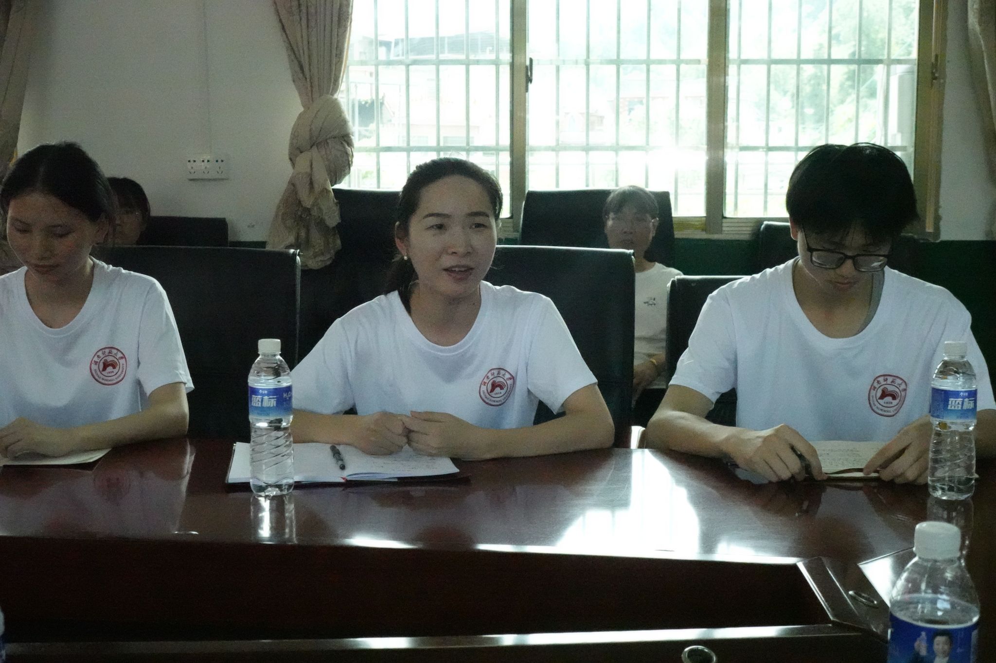 王贞代表“青树行”实践团对四都中学的支持表示感谢。她强调,正值夏日,社会实践团成员们应增强安全防范意识,时刻将安全放在第一位,相互配合,相互帮助,提高团队合作意识,确保暑期社会实践活动顺利进行。她希望,全体成员能够将专业知识与社会实践相结合,充分利用“三下乡”实践活动发扬志愿服务精神,展现出树达学子的优秀精神面貌,积极投身于社会实践,在实践中探索真知、在磨炼中增长才干、在奉献中担当作为。