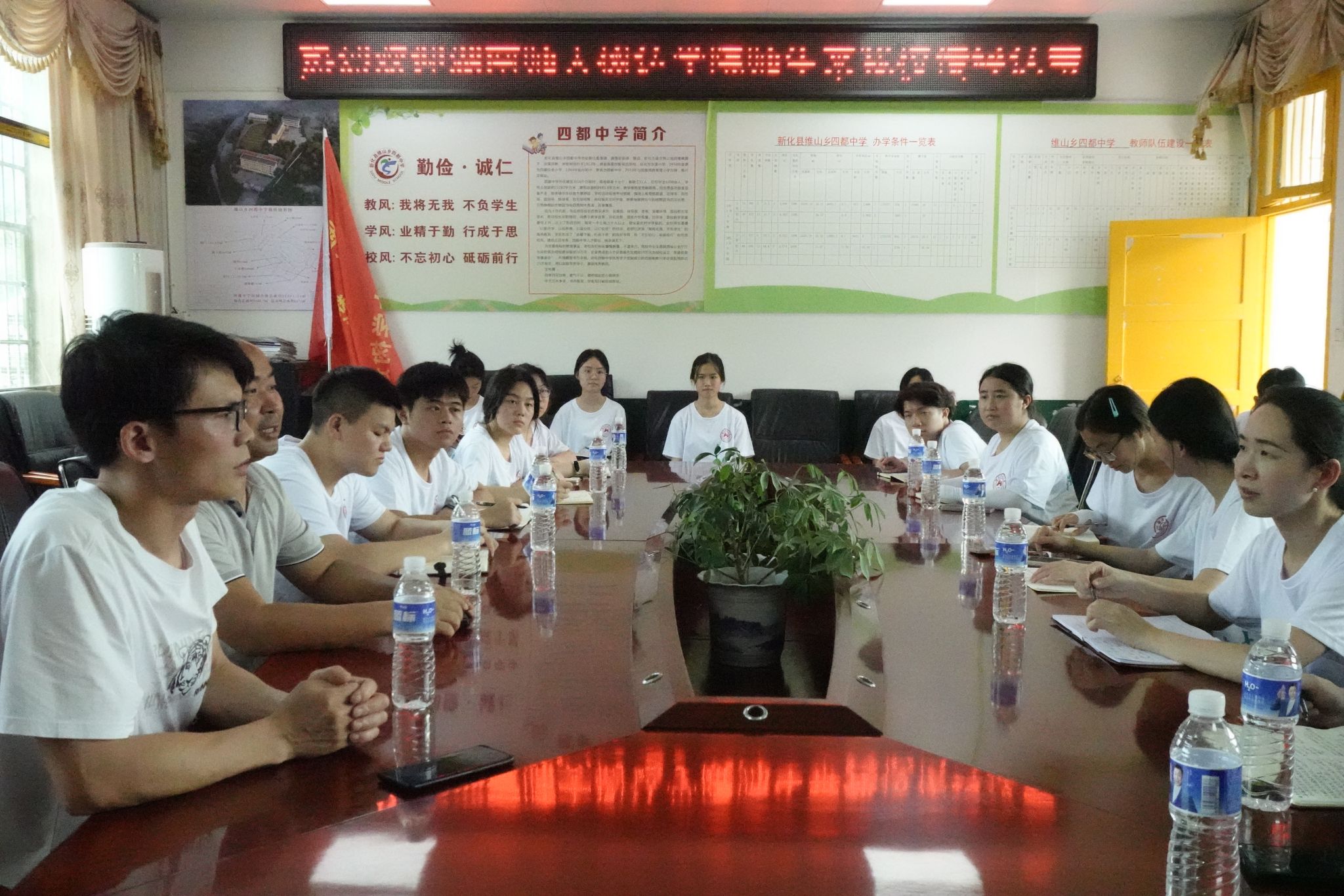 吴红峰代表四都中学对实践团的到来表示热烈欢迎。他希望,作为新时代青年,同学们能够深入了解国情、县情、乡情,切实体会新时代乡村的发展变化,强化本领担当,锤炼意志品格,实现“服务社会、锻炼自我”的双重目标,为山区的孩子们带来创新的实践课堂,在基层土地上贡献自己的青春力量。
