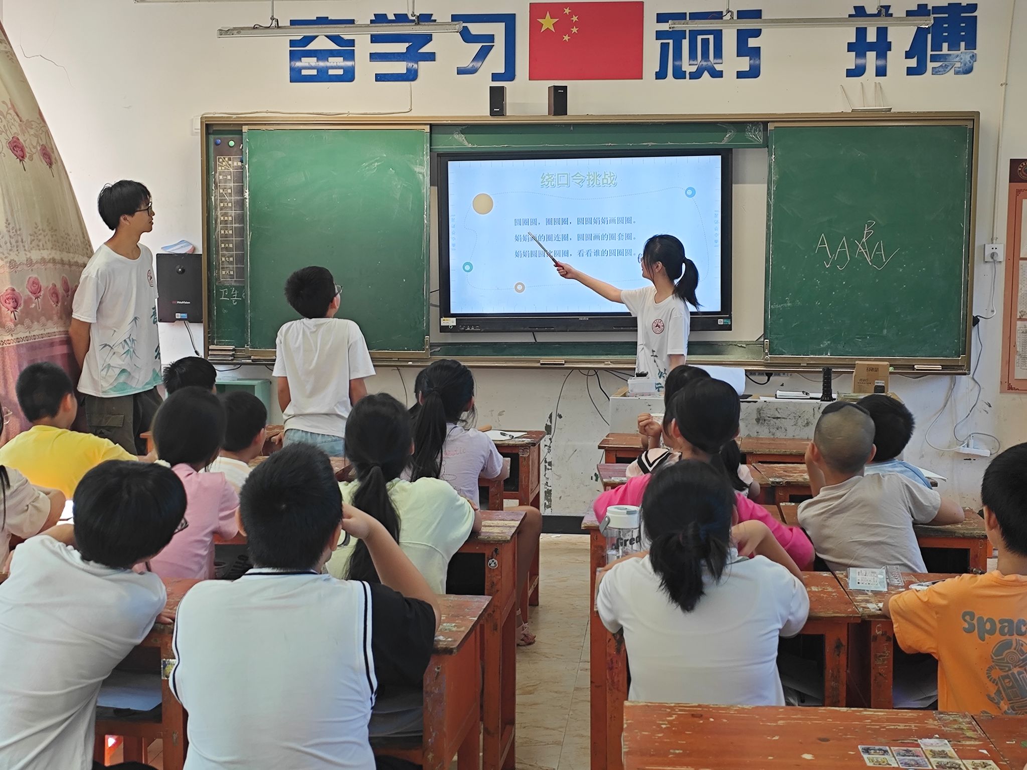 (记者 邹韵霖 蒋婷婷 刘艺杰)7月8日上午,公司太阳成集团tyc33455cc三下乡“青树行”暑期社会实践团在四都中学开设普通话特色课程。宣传组组员伍扬担任主讲人。
