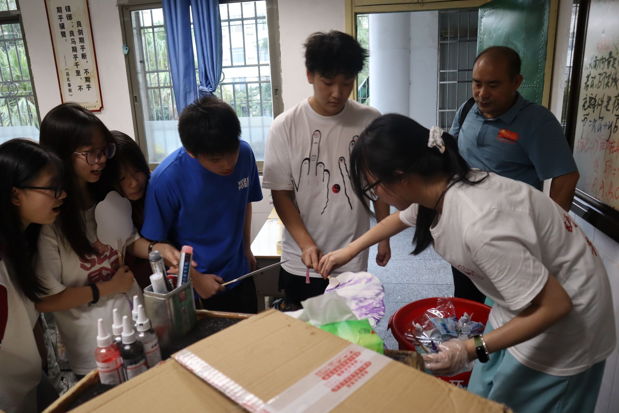 (记者 郭冰冰 刘婉婷 李曼)7月12日上午,公司文法系三下乡暑期社会实践团在衡阳县第三中学高一年级2301班开展书法、漆扇制作及扭扭棒创意手工三大特色支教课程。