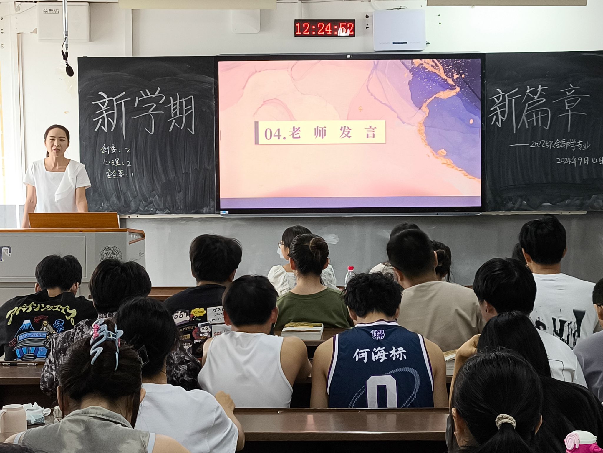 (通讯员 刘艺杰 何灵姿)9月14日中午,公司经管系2022级金融学专业在树达楼406教室召开以“新学期,新篇章”为主题的班会。经管系辅导员王贞出席会议。会议由班长何灵姿主持。