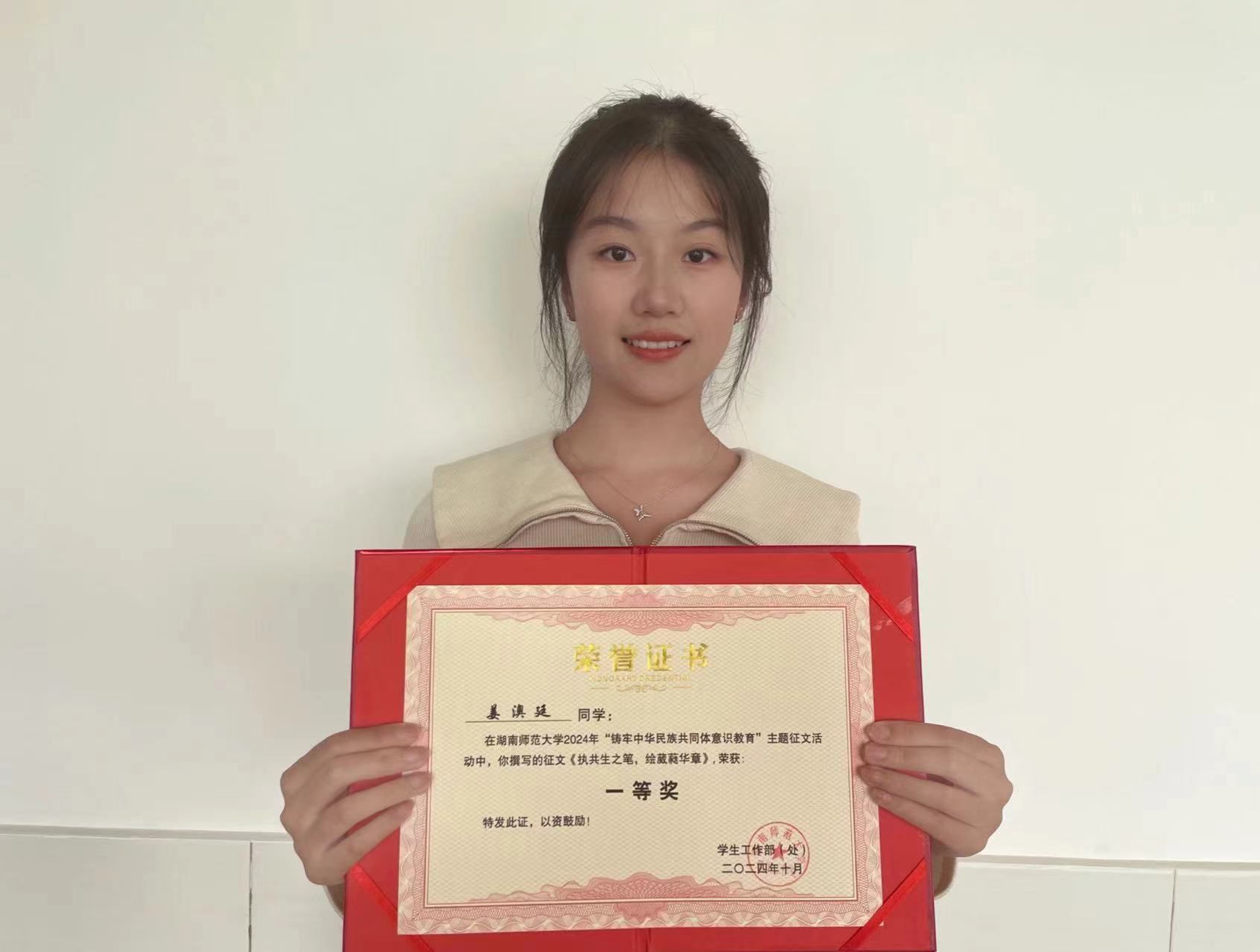 (通讯员 刘婷 蒋雯 谢翠)10月9日,公司文法系2023级汉语言文学专业的姜澳廷在“铸牢中华民族共同体意识教育”主题征文活动中荣获校级一等奖。