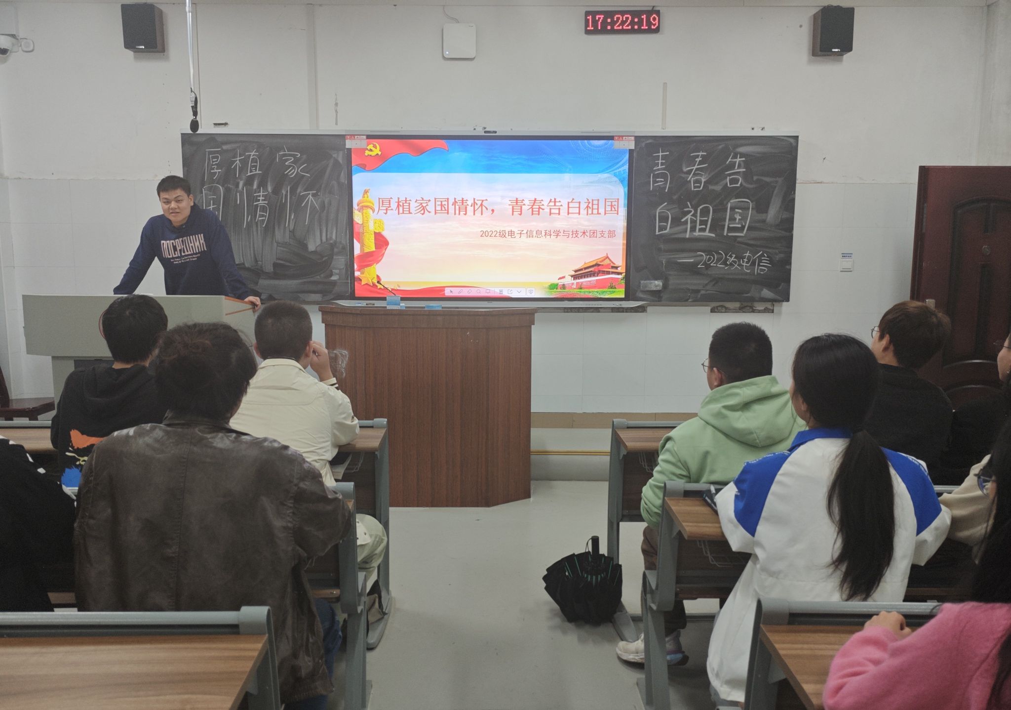 (通讯员 叶俊杰 胡洋)10月14日下午,公司理工系2022级电子信息科学与技术专业在树达楼105教室开展以“厚植家国情怀,青青告白祖国”为主题的团日活动。活动由团支部书记王杰主持。