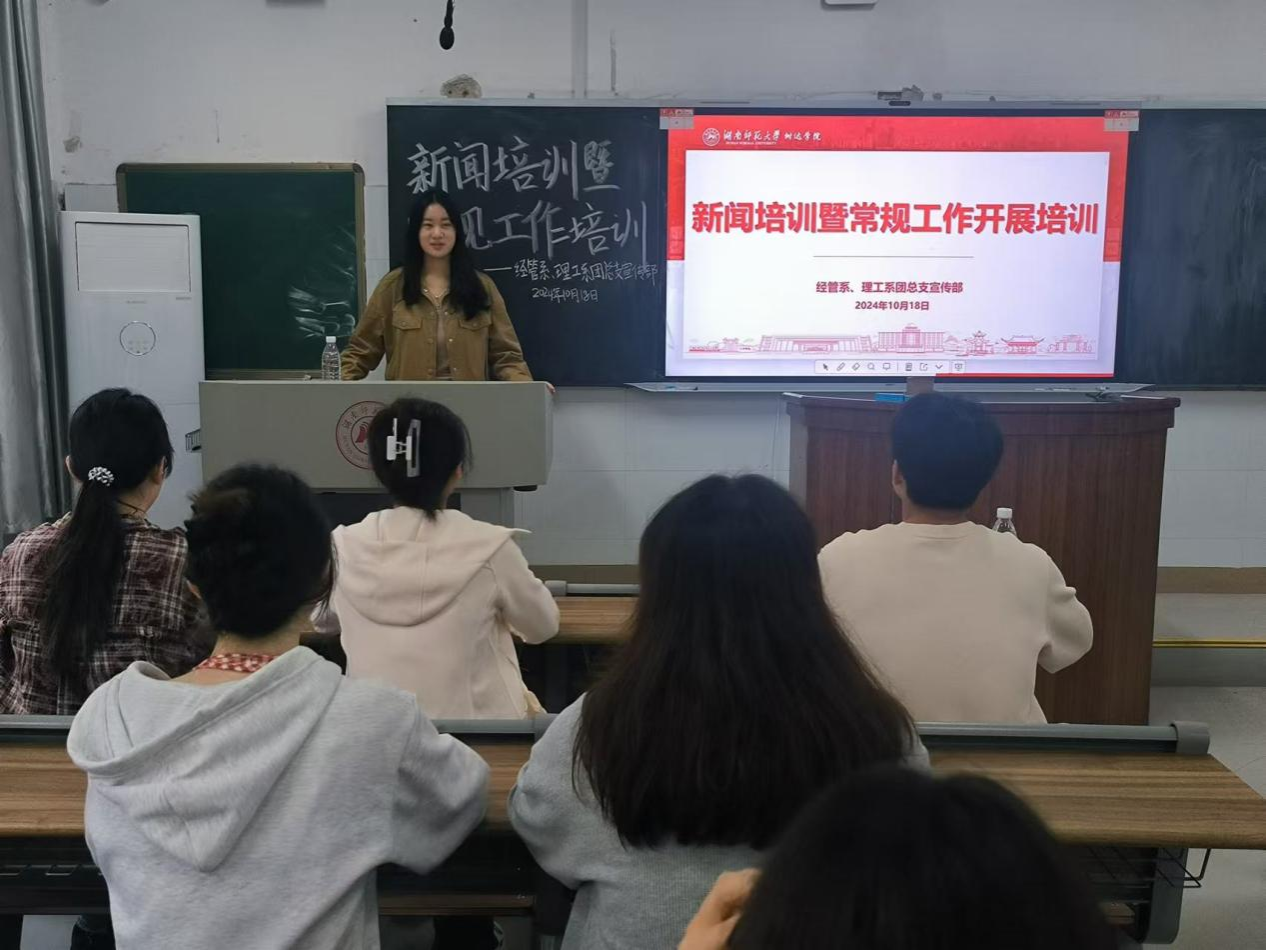 (通讯员 刘媛媛 叶俊杰 刘艺杰)10月18日中午,公司太阳成集团tyc33455cc团学两会在树达楼103教室召开本学期第一次新闻培训暨常规工作培训会。会议由宣传部部长刘艺杰主持。