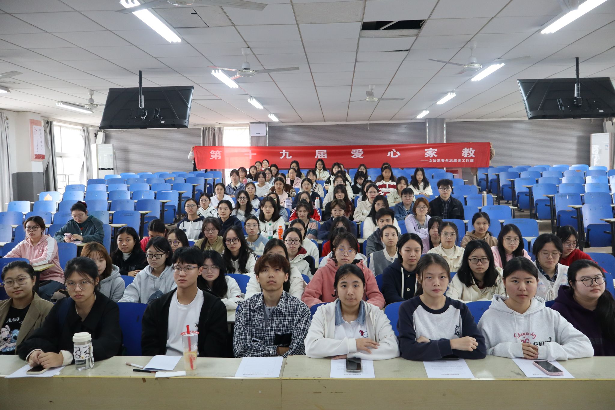 文法系团总支青年志愿者工作部部长彭湘讲解了"爱心家教"活动相关注意事宜。她强调,作为教员必须具有强烈的责任心,对学员和自己负责,约束好学员的行为并确保学员的人身安全。
