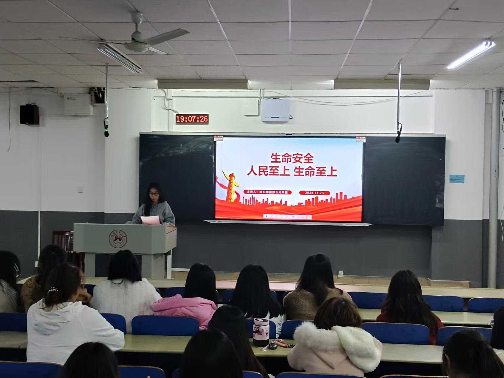 (通讯员 冯思怡 刘婉婷 康世强)11月21日晚,公司文法系团学两会与2023级汉语言文学专业二班在树达楼415教室开展以“珍视生命安全——人民至上、生命至上”主题的团日活动宣讲会。宣讲会由文法系团总支组织部副部长孙斯嘉主持。