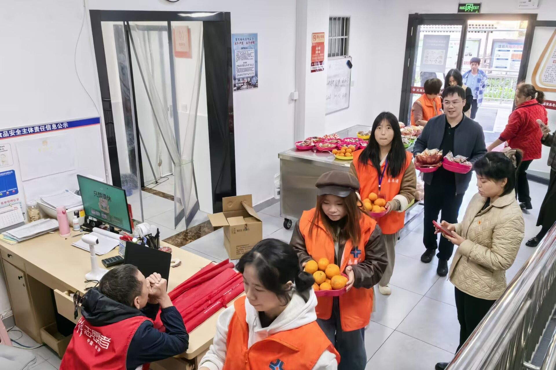 志愿者分工协作,互相配合,为社区老人带来了舞蹈、诗词朗诵、唱歌等节目,帮助行动不便的老人端送果盘、递送物品,让社区老人感受到了来自社会大家庭的温暖与关爱。