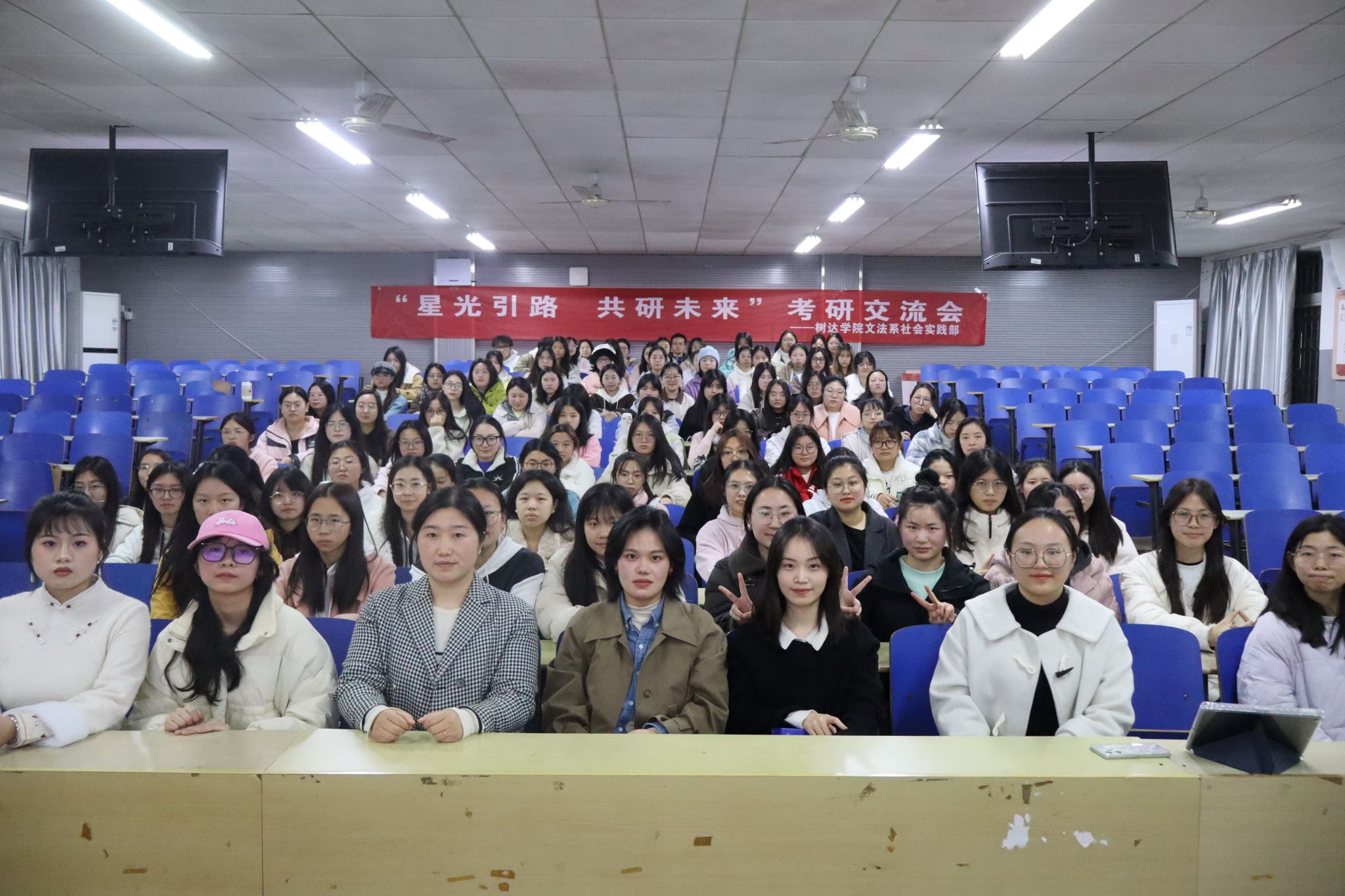 (通讯员 冯思怡 刘婉婷 康世强)11月28日晚,文法系社会实践部在树达楼115教室开展以“星光引路,共研未来”为主题的考研交流活动。文法系团总支书记兼文法系员工第二党支部第一书记彭娇出席活动。2019级法学专业李晨、2019级英语教育专业袁彩凤、2019级汉语言文学专业易紫琳作为嘉宾出席。活动由文法系社会实践部部长罗露芬主持。