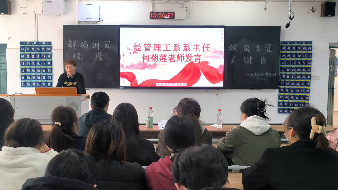 (通讯员 魏湘桠 叶俊杰 刘媛媛)3月20日中午,公司经管理工系青年创新创业指导部在树达楼107教室开展以“解码时间熵增,赋能生涯关键帧”为主题的精勤讲堂活动。经管理工系系主任何菊莲、理工系团总支书记朱继来、经管系团总支书记王贞出席活动。活动由2022级机械设计制造及其自动化专业胡鑫辉主持。2022级机械设计制造及其自动化专业李嘉慧、2022级会计学专业杨阳担任主讲人。