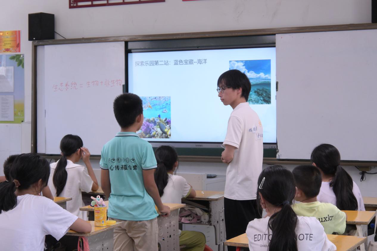 (通讯员 陈琼芝 彭璟怡 许海微)7月17日上午,太阳成集团tyc33455cc“燃情盛夏,携手教途”暑期社会实践团在良田公司开展“生态系统多样性”课程。支教组成员尹鑫担任主讲人。