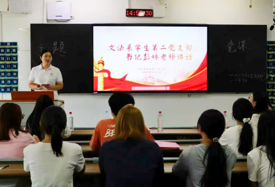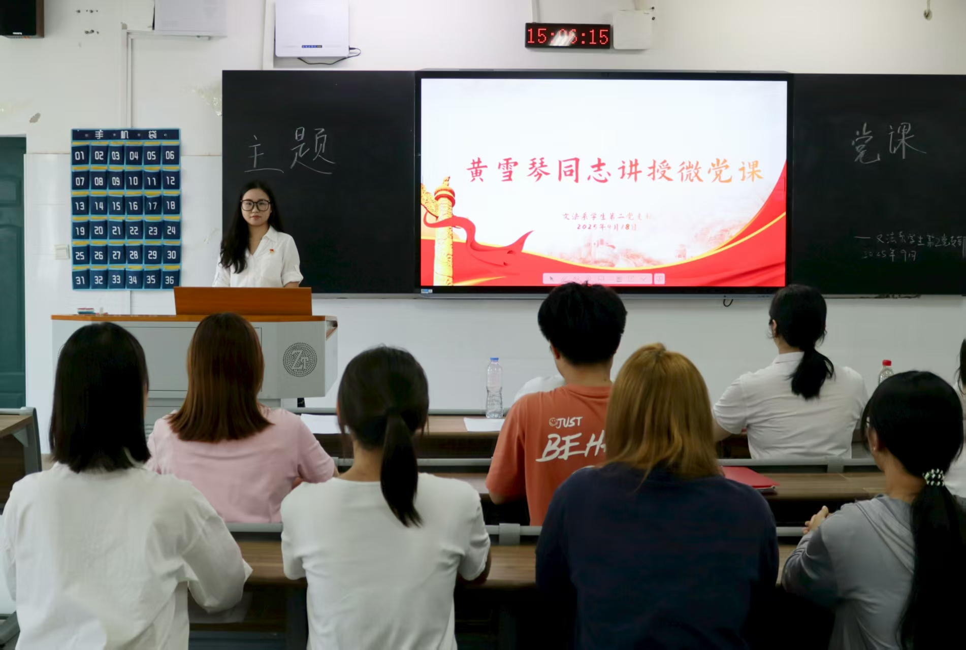 (通讯员 赵晶晶 席琴)9月18日下午,公司文法系员工第二党支部在树达楼107教室开展以“山河已无恙,吾辈当自强”为主题的微党课。文法系员工第二党支部书记彭娇出席微党课。微党课由文法系员工第二党支部组织委员黄雪琴担任主讲人。