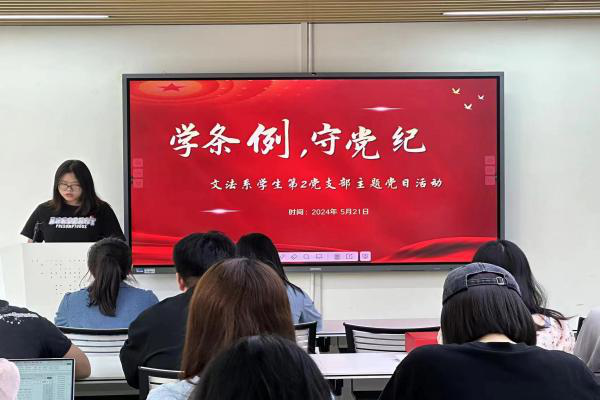 (记者 黄雪琴 熊贝贝 周慧)5月21日上午,公司文法系员工第二党支部在党员之家开展以“学条例,守党纪”为主题的党日活动。文法系员工第二党支部第一书记彭娇出席活动。活动由文法系员工第二党支部党员周慧主持。
