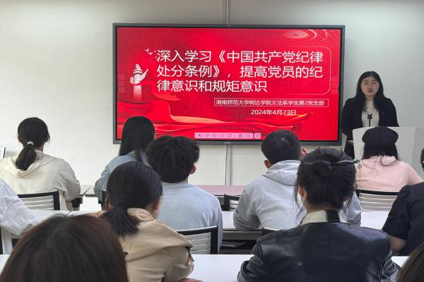 (记者 黄雪琴 李佳怡 周慧)4月23日中午,公司文法系员工第二党支部在党员之家开展关于深入学习《中国共产党纪律处分条例》的学习活动。活动由文法系员工第二党支部第一书记彭娇组织开展。