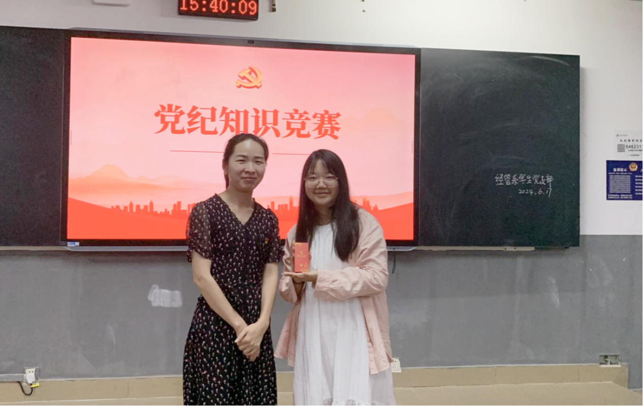 (记者 吴雨霏 李青云 刘艺杰)6月17日下午,公司经管系员工党支部在树达楼406教室开展党纪知识竞赛。经管系员工党支部第一书记王贞出席活动。