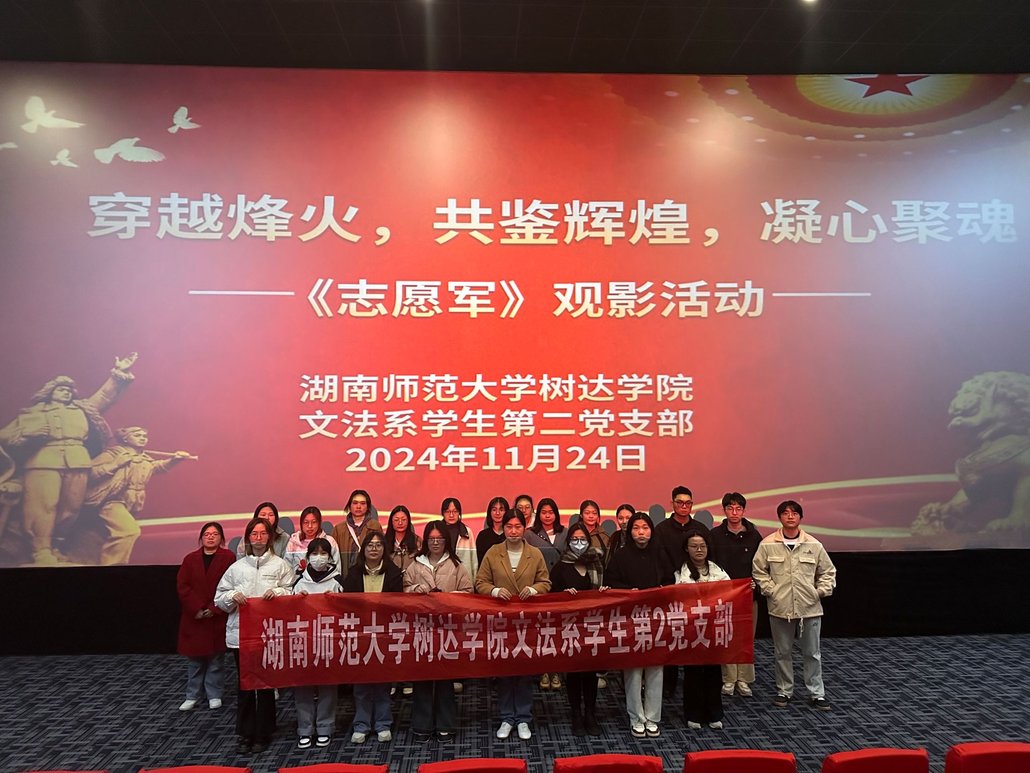 (通讯员 谭思 熊贝贝 黄雪琴)11月24日上午,公司文法系员工第二党支部在潇湘国际影城开展以“穿越烽火,共鉴辉煌,凝心聚魂”为主题的红色观影活动。文法系员工第二党支部第一书记彭娇出席活动,活动由文法系员工第二党支部成员谭思负责。
